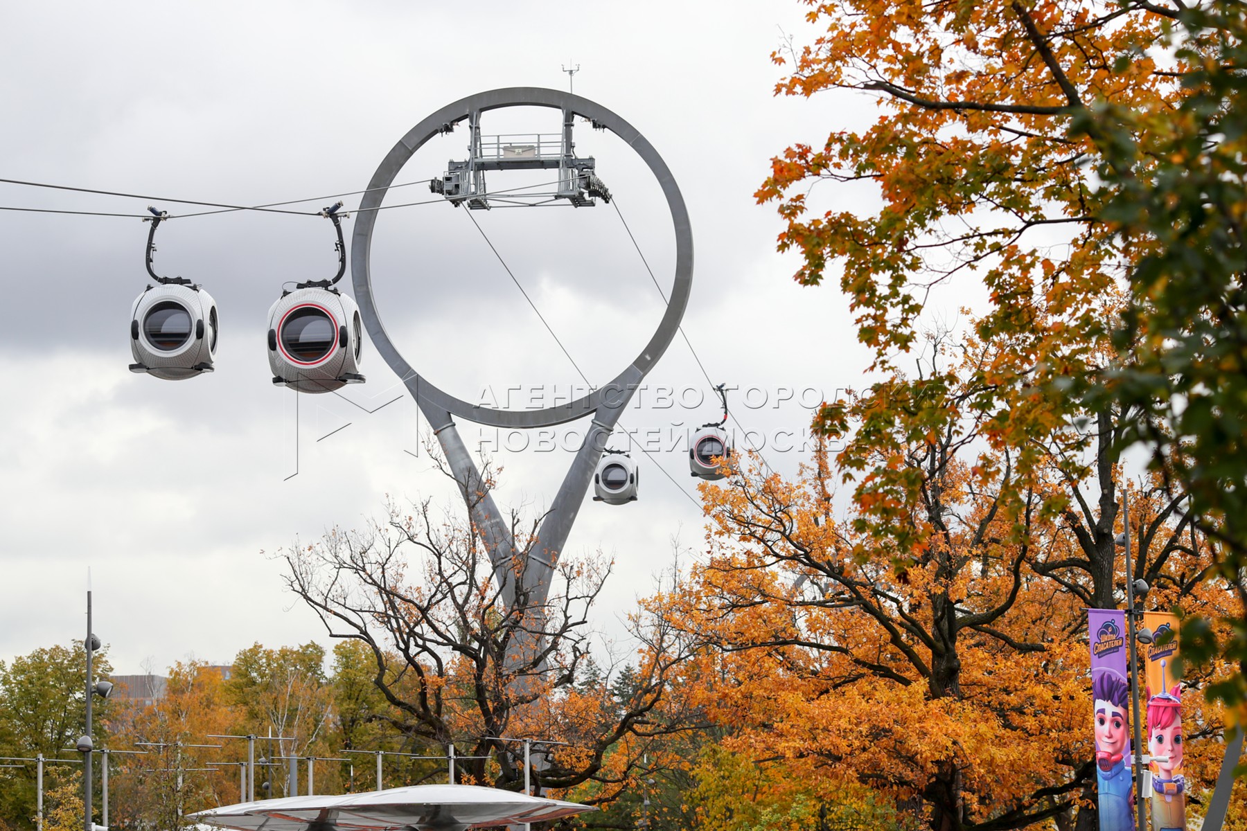 Работа аттракциона «Воздушный трамвай» на ВДНХ в тестовом режиме.