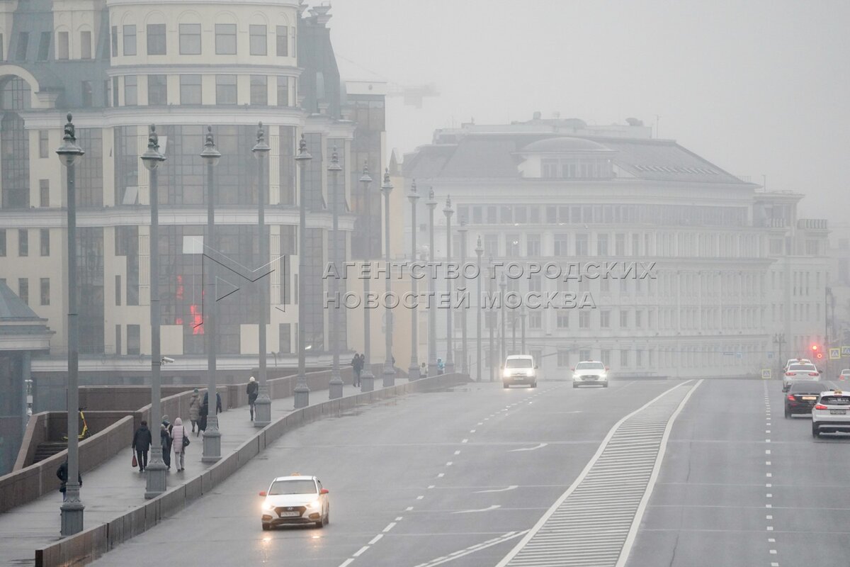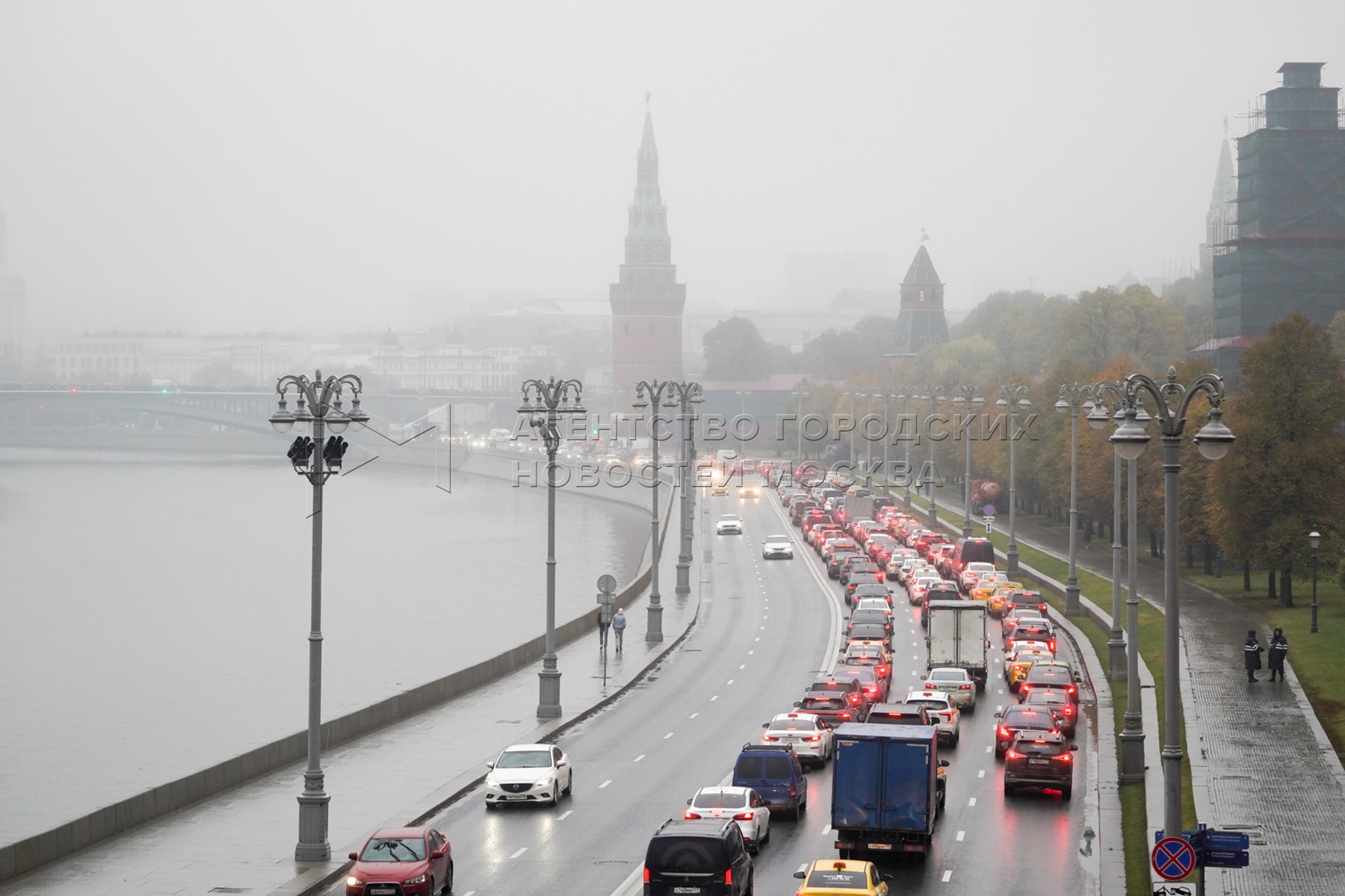 Кремлевская набережная. Сильный туман в Москве 23 октября 2023 года.