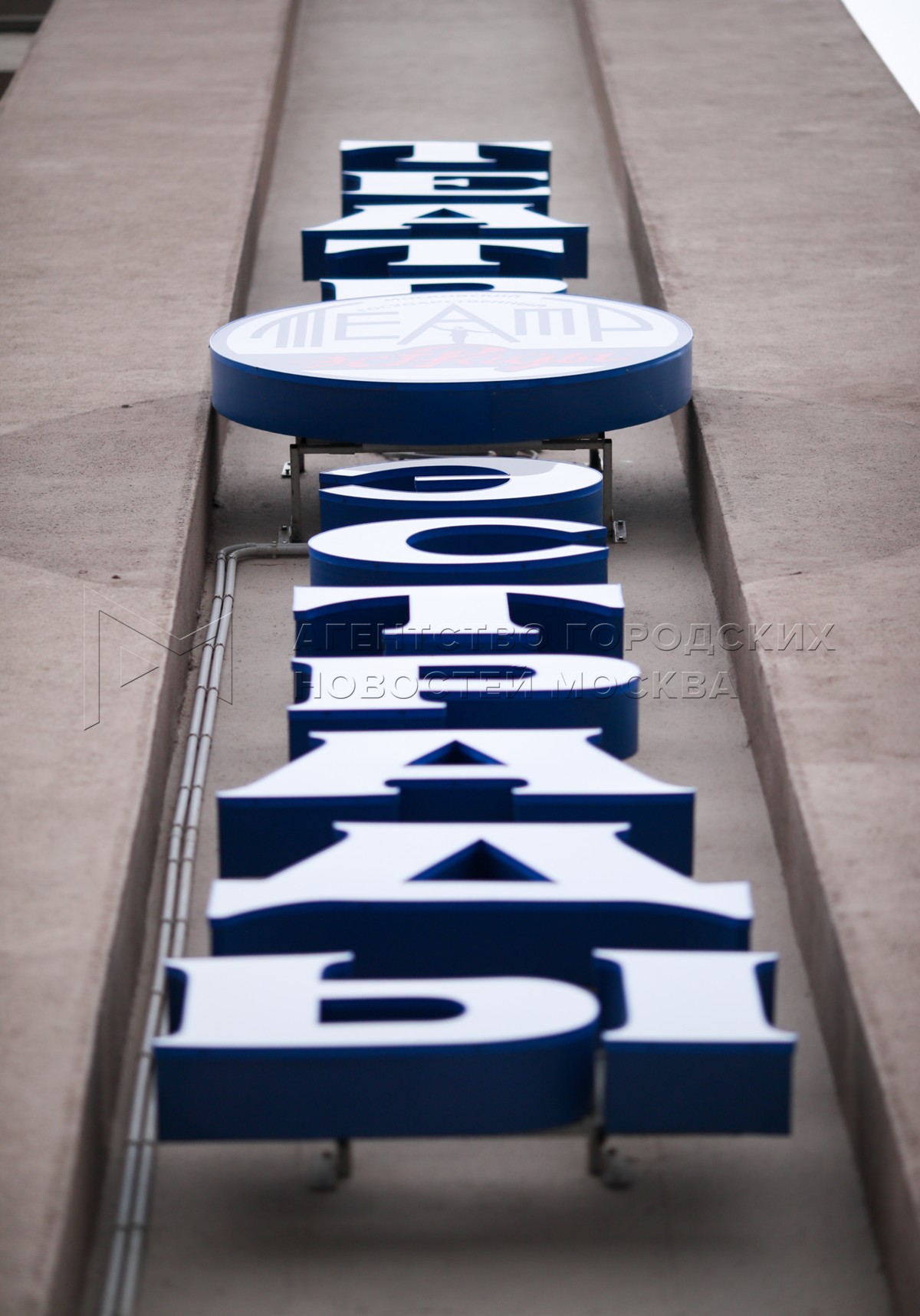 Вывеска на фасаде здания Московского государственного театра эстрады после рестав...