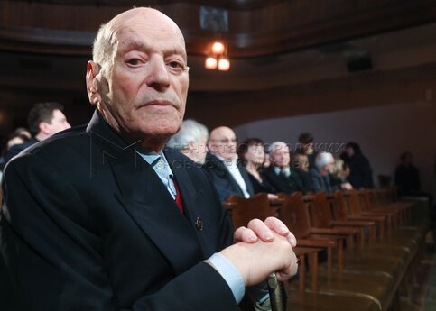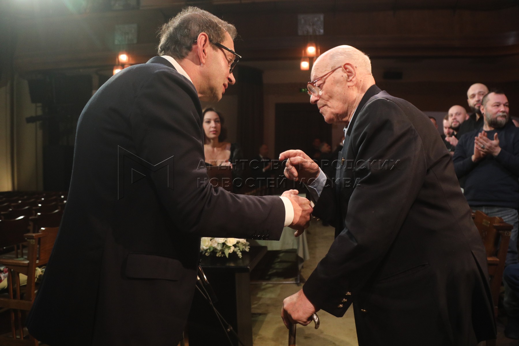 Легендарный фотограф МХАТа Игорь Александров, получивший «Чайку» за 65 лет службы в театре, во время вручения нагрудных знаков «Чайка» за преданность и служение театру в Московском художественном театре имени Чехова.