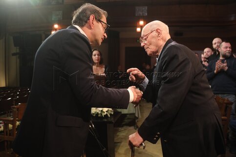 - Описание: Легендарный фотограф МХАТа Игорь Александров, получивший «Чайку» за 65 лет службы в театре, во время вручения нагрудных знаков «Чайка» за преданность и служение театру в Московском художественном театре имени Чехова.
