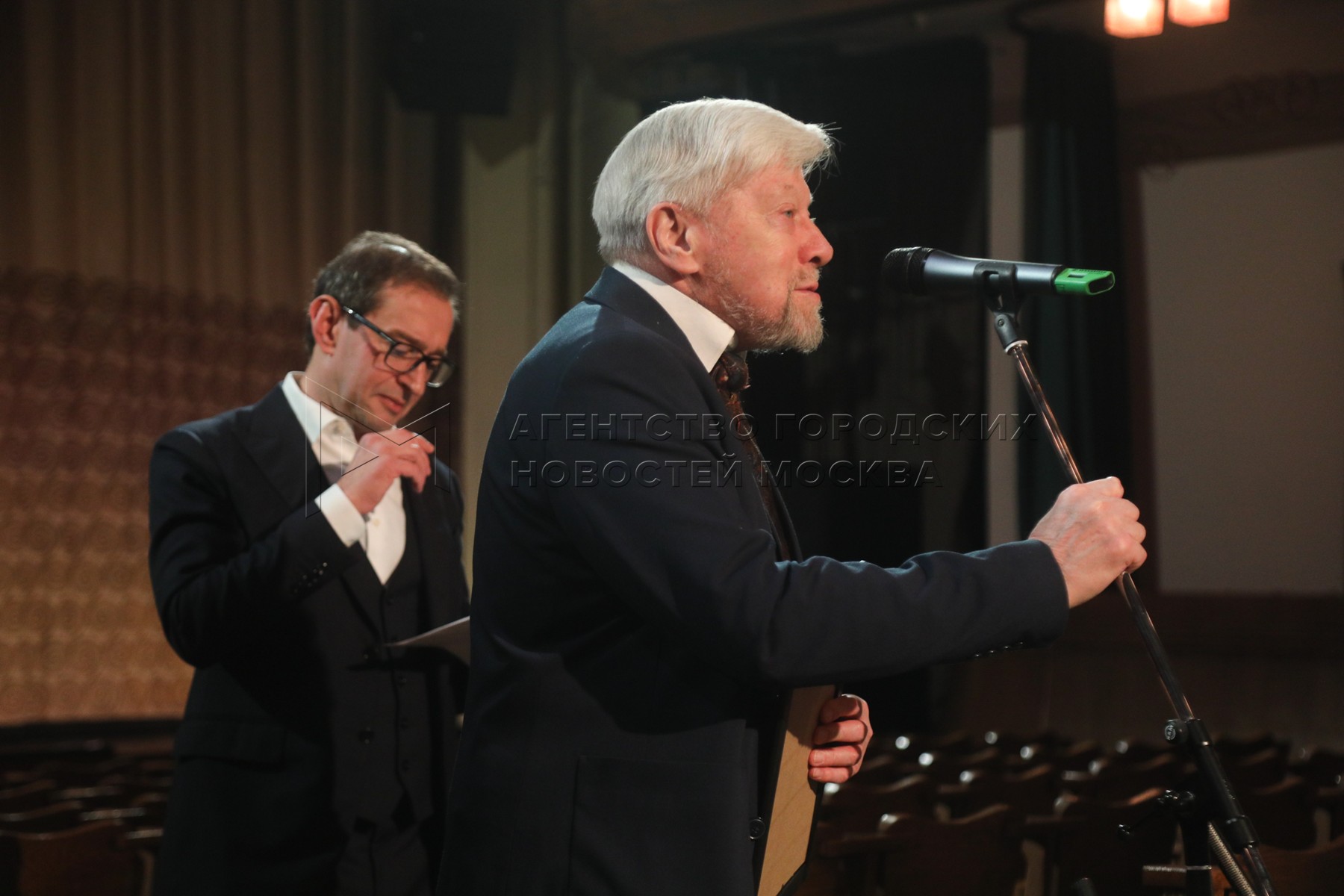 - Описание: Художественный руководитель – директор МХТ имени Чехова Константин Хабенский (слева) и заведующий музыкальной частью театра, внук В.И. Немировича-Данченко – Василий Немирович-Данченко во время вручения нагрудных знаков «Чайка» за преданность и служение театру в Московском художественном театре (МХТ) имени Чехова.