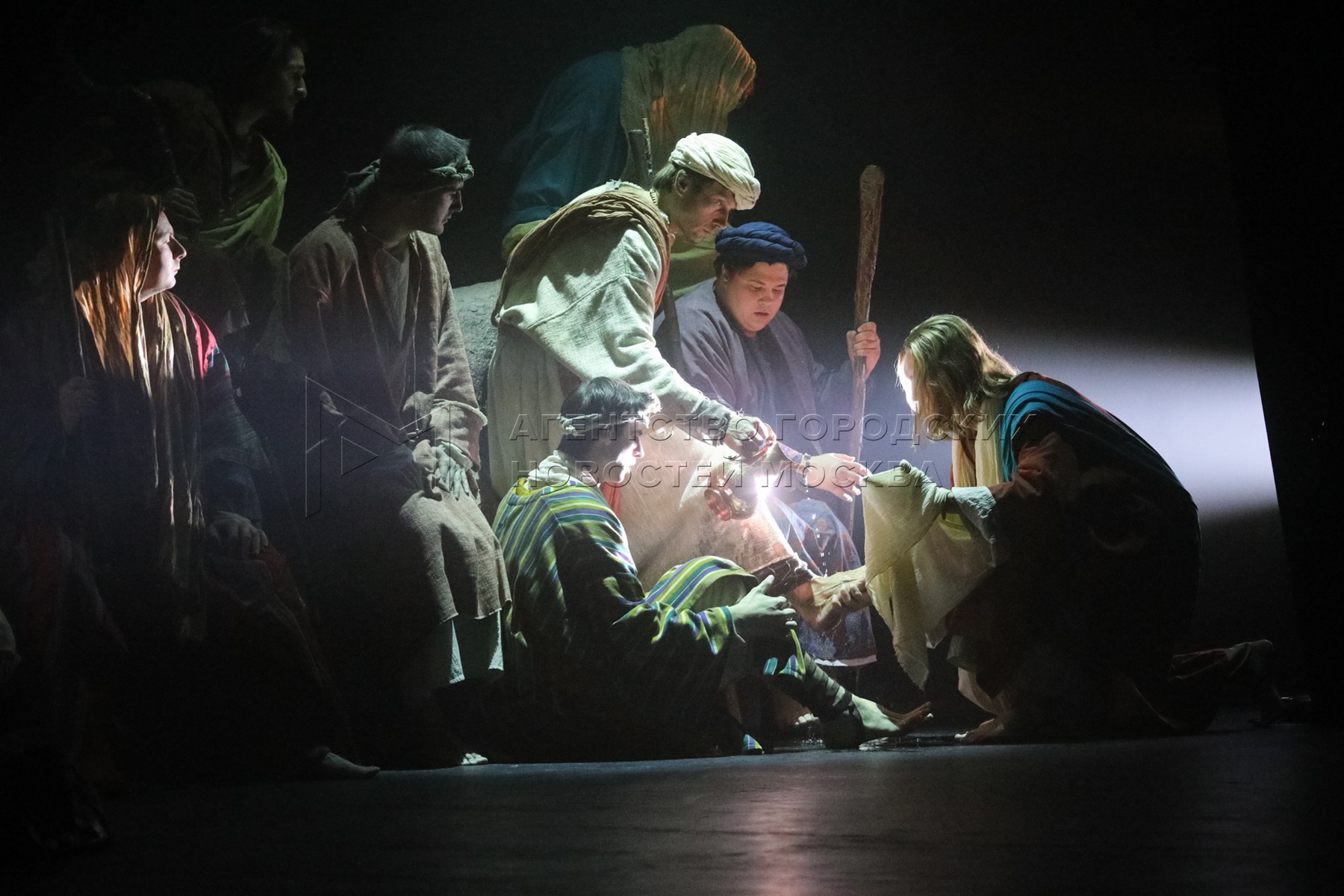 • Описание: Актеры во время показа премьерного спектакля «Иуда» в театре «Модерн».
