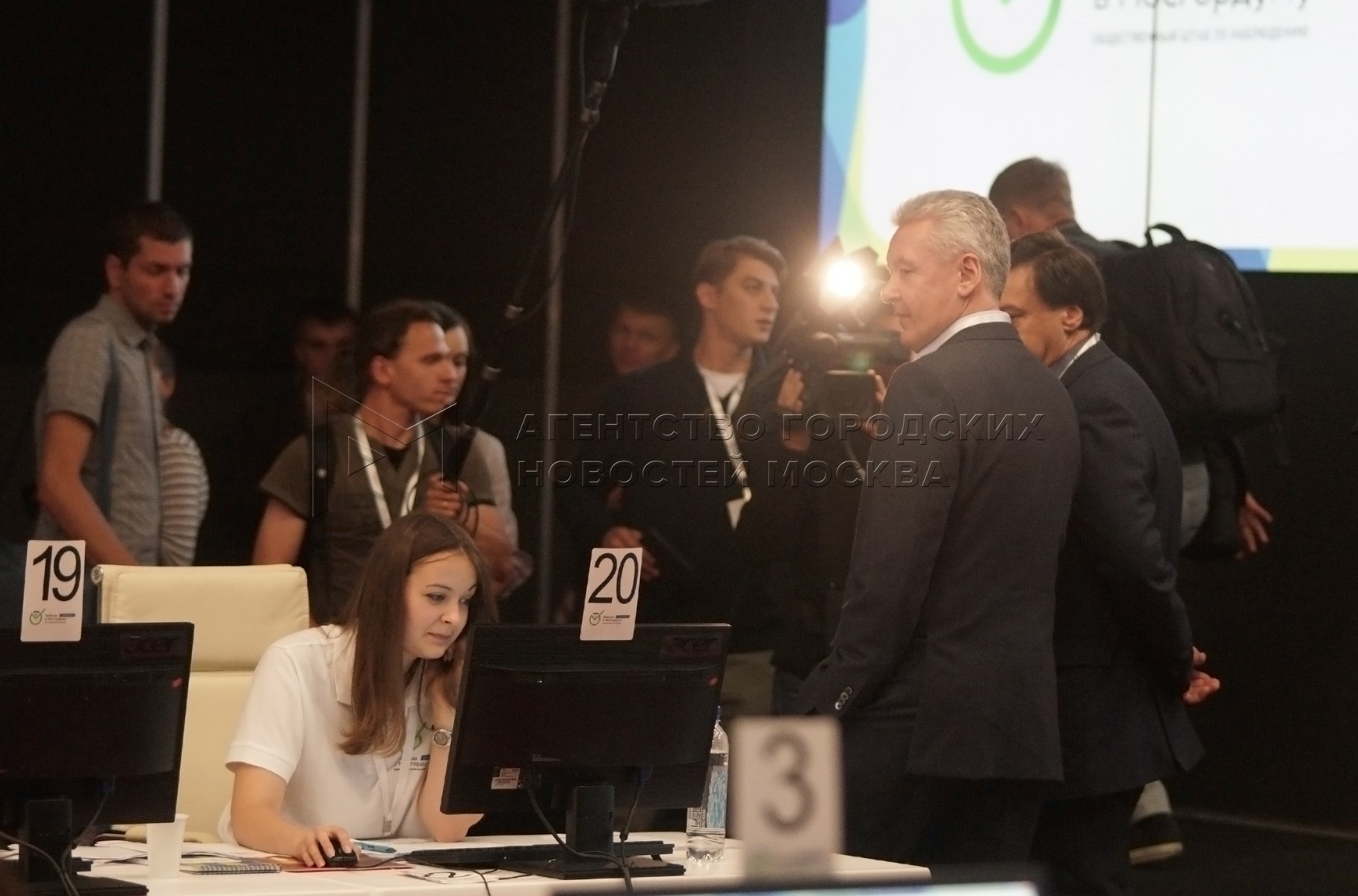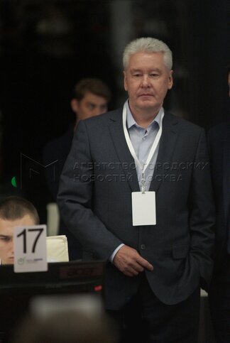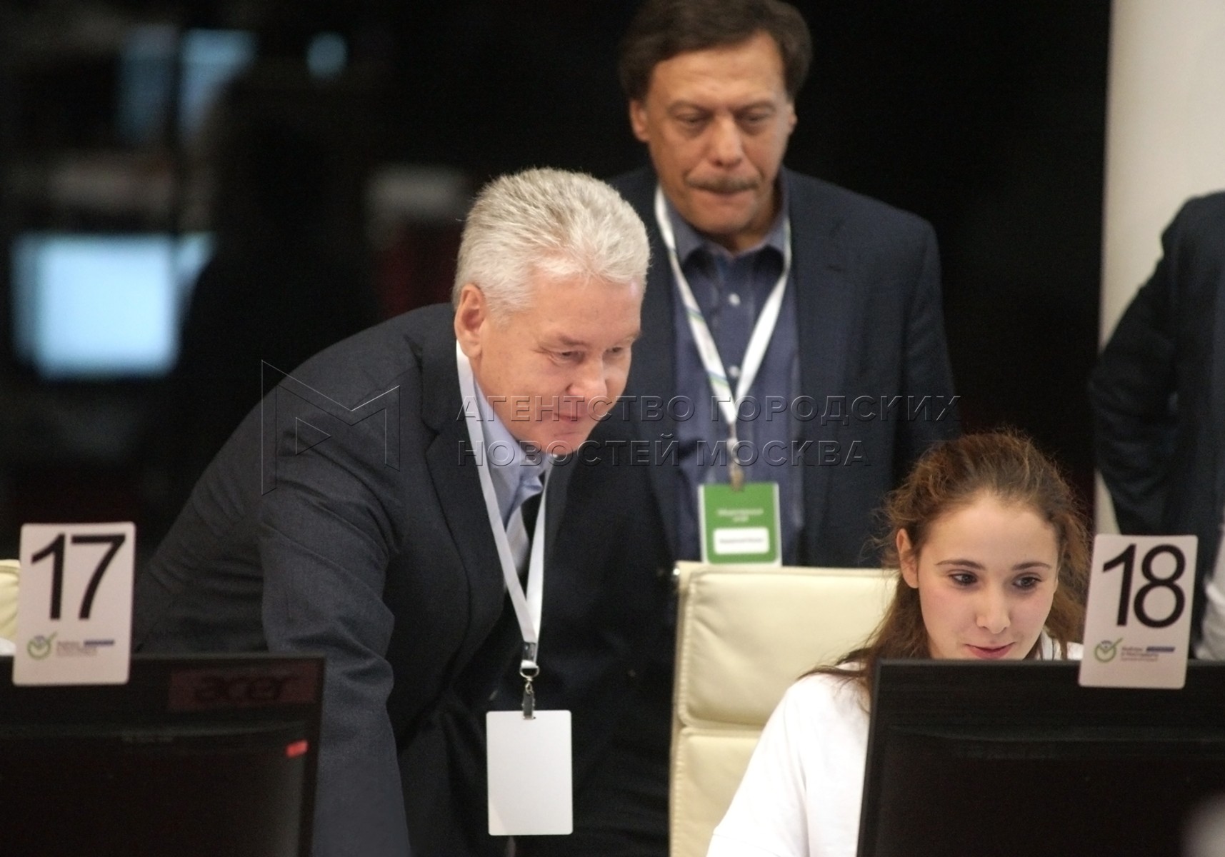• Описание: Сергей Собянин (в центре на втором плане) в штабе Общественной палаты Москвы по наблюдениям за выборами.