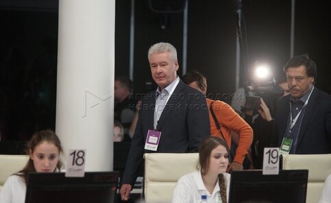 Сергей Собянин в штабе Общественной палаты Москвы по наблюдениям за выборами.