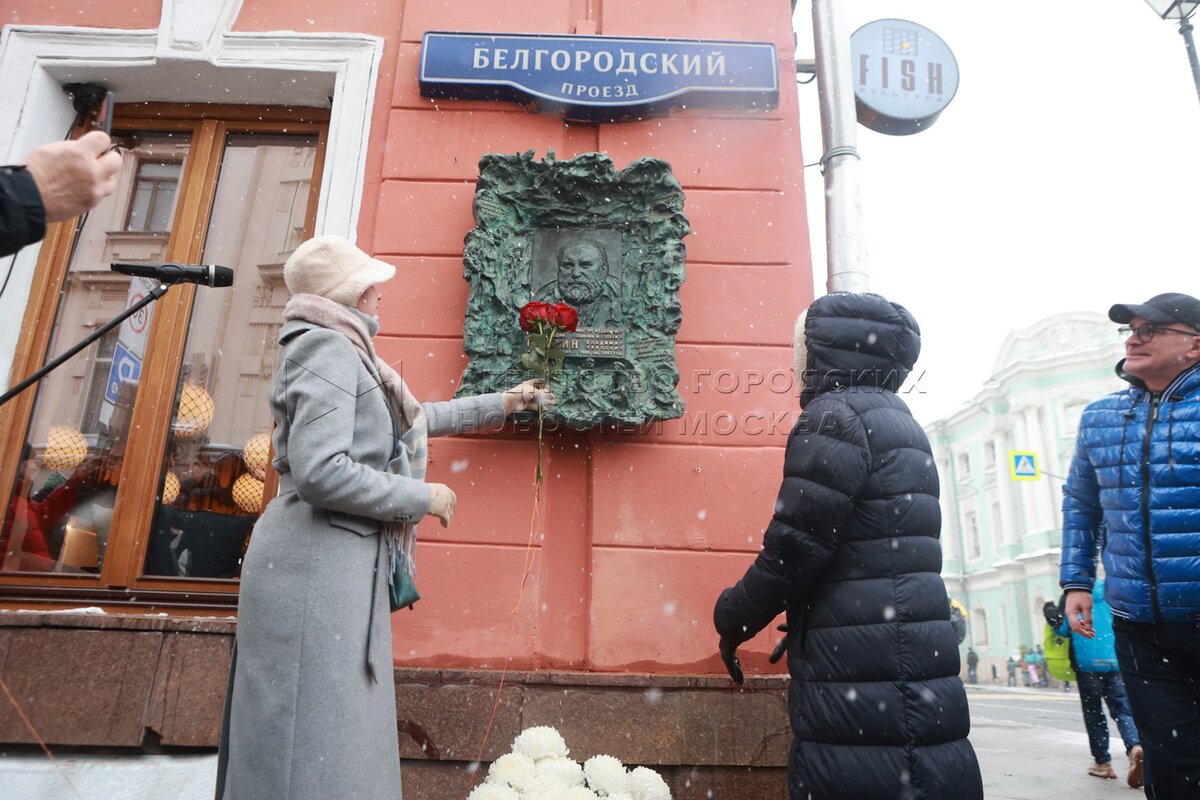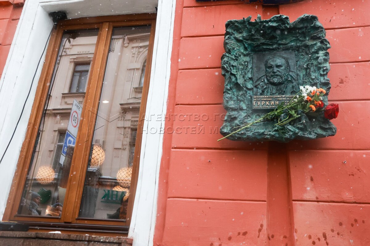 Открытие мемориальной доски автору пьесы «Любовь и голуби» Владимиру Гуркину по адресу: ул. Покровка, д. 21–23/25, стр. 1.