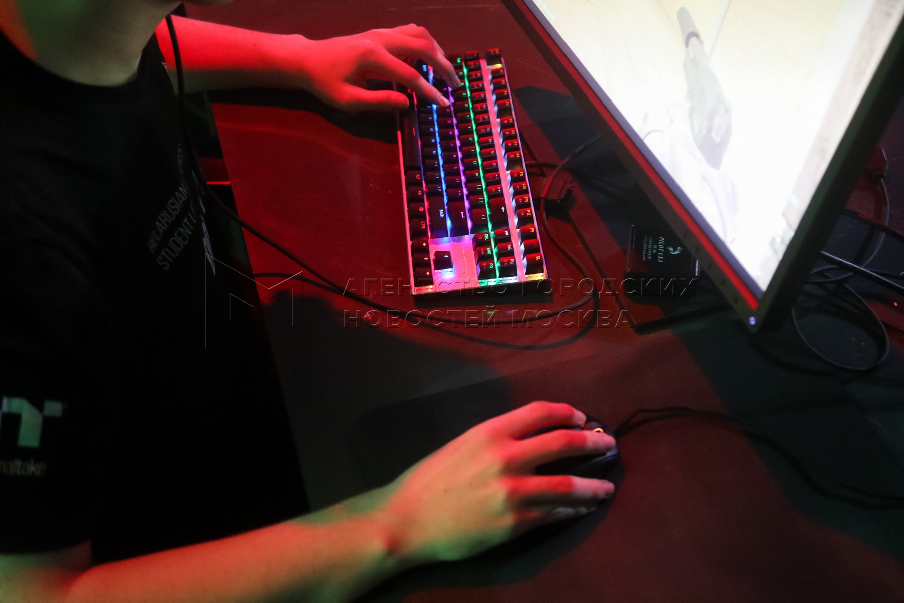 Геймер, киберспортсмен Илья Пелехацкий во время финала открытых киберспортивных с...