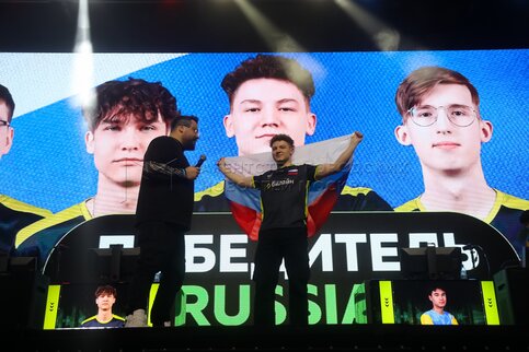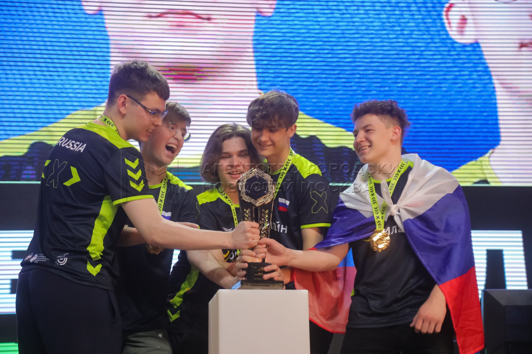 Сборная России, занявшая I место, во время финала открытых киберспортивных студен...