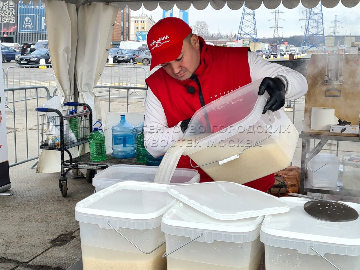 - Описание: Повар, блогер, владелец чайханы Алишер Халилов во время благотворительной акции «Самый большой плов, приготовленный одним поваром» на территории оптово-розничного продовольственного центра «Фуд Сити».