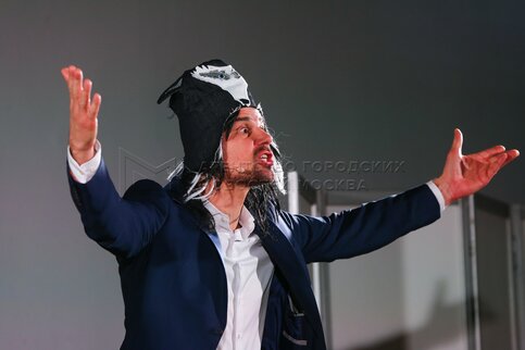 Актеры Максим Амельченко во время перформанса «Манифест» по мотивам работ Павла Ф...