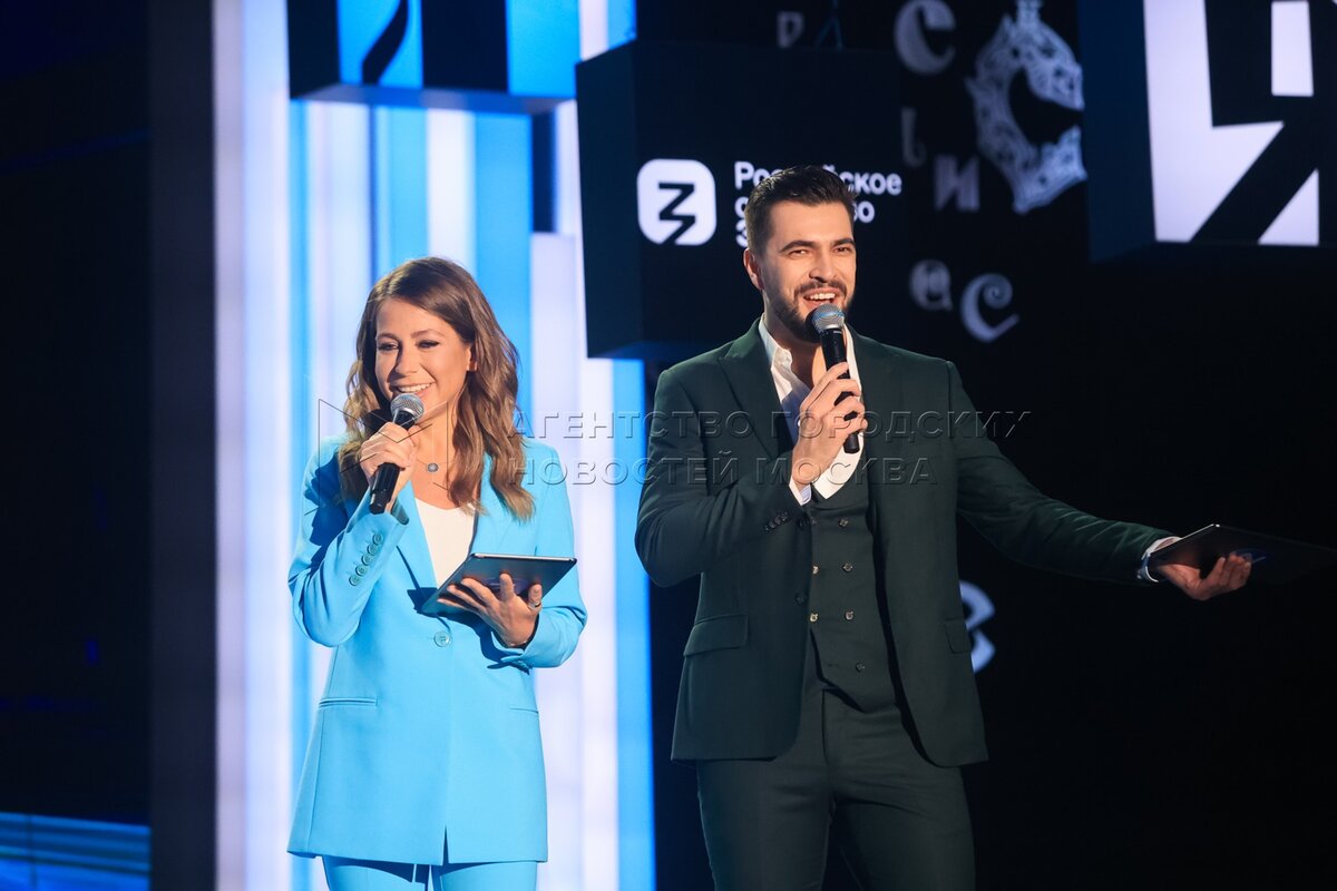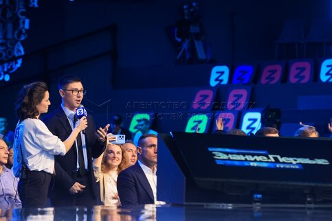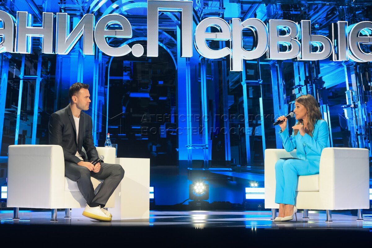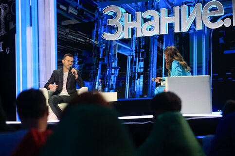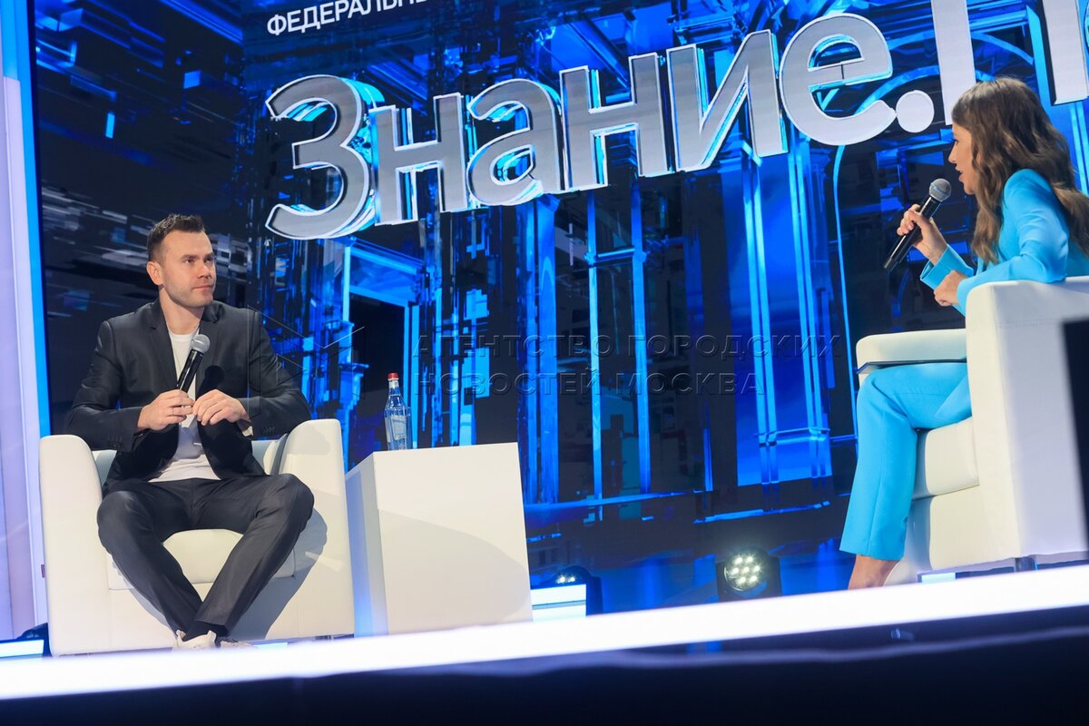 Телеведущие Евгений Попов и Вера Красова на просветительском марафоне «Знание.Пер...