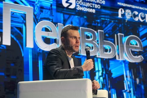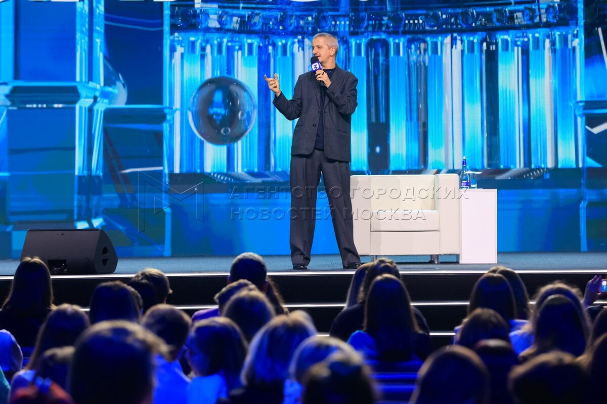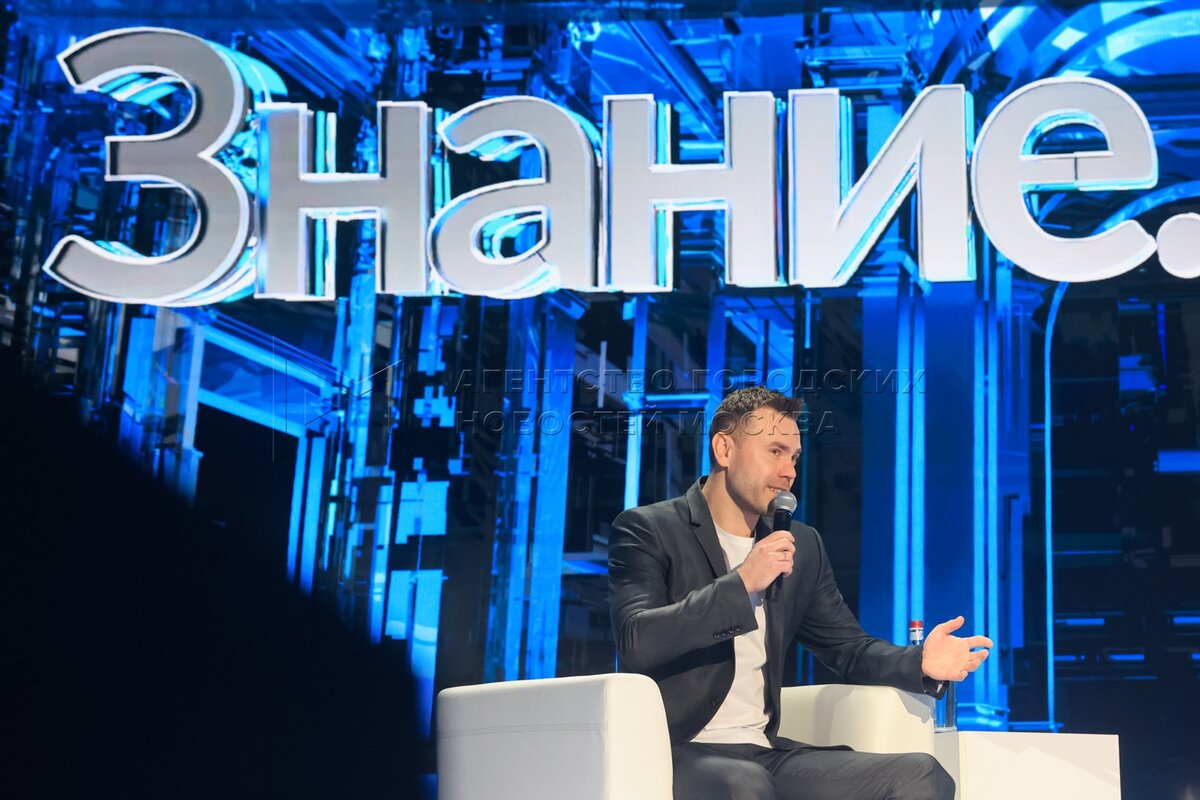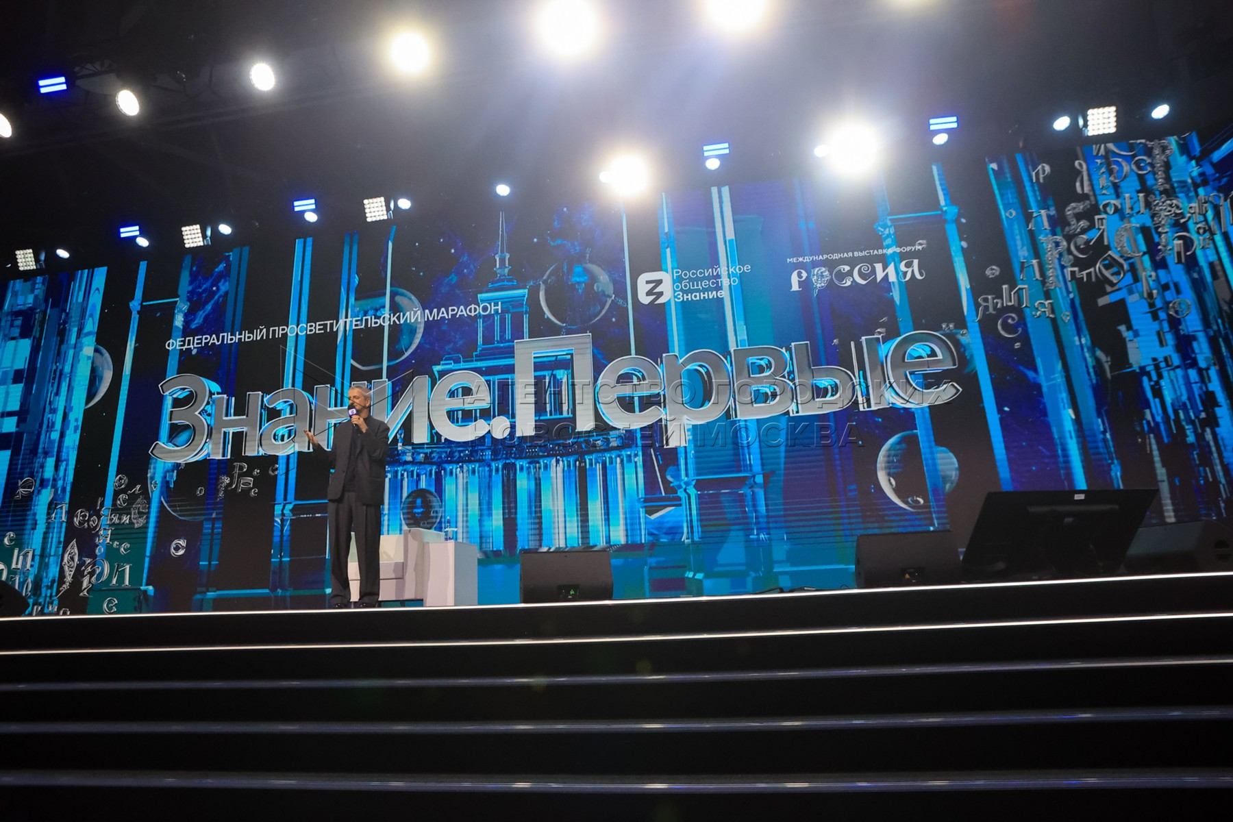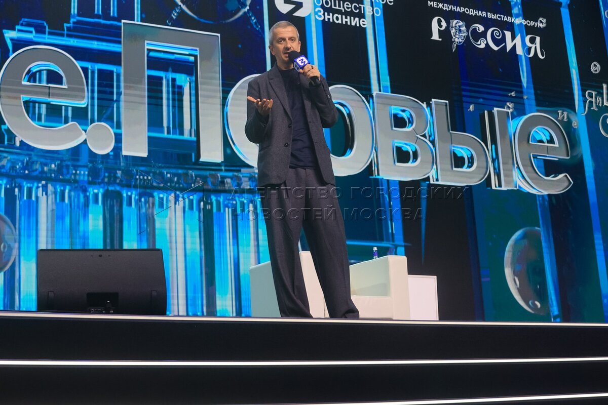 Телеведущий Евгений Попов на просветительском марафоне «Знание.Первые» на ВДНХ.