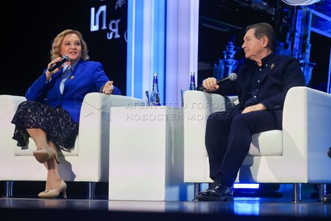 Спикер Совета Федерации РФ Валентина Матвиенко и телеведущий Евгений Попов на про...