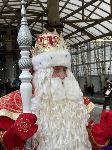 Дед Мороз из Великого Устюга во время презентации новогоднего поезда Деда Мороза на Киевском вокзале.