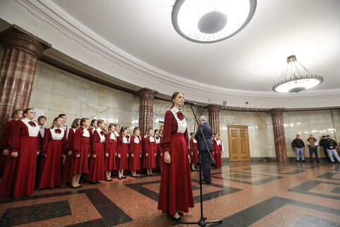 Выступление Большого детского хора в аванзале станции метро «Курская».