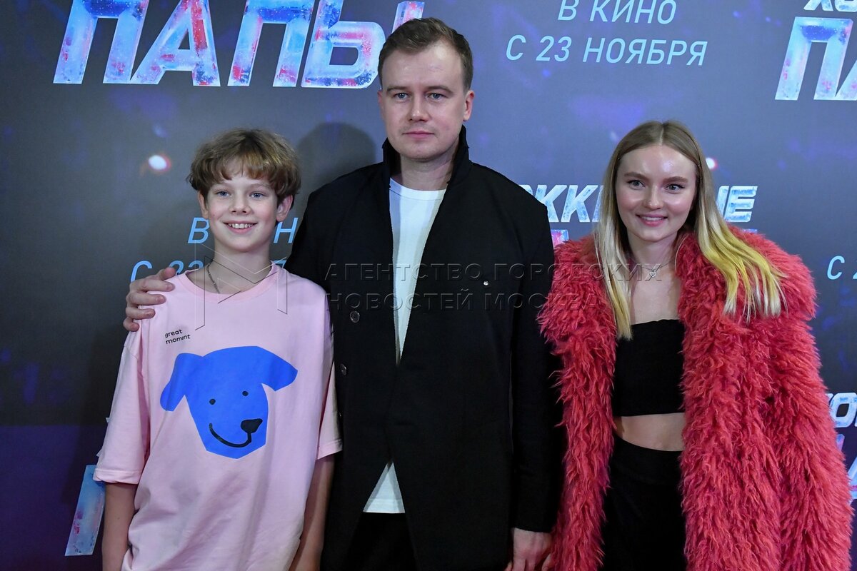 Актер Алексей Бардуков с сыном Иваном во время премьеры спортивного фильма «Хокке...