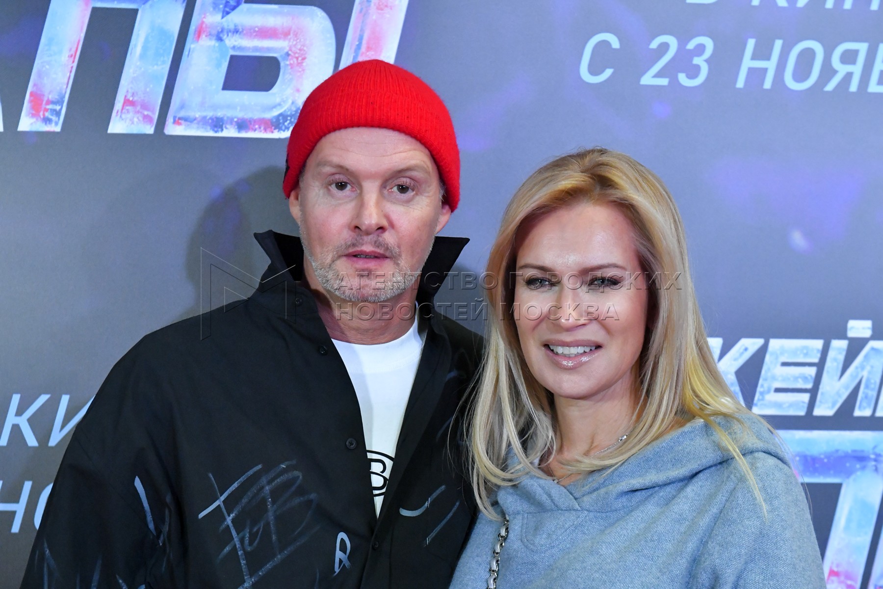 Актер Андрей Феськов с супругой во время премьеры спортивного фильма «Хоккейные п...