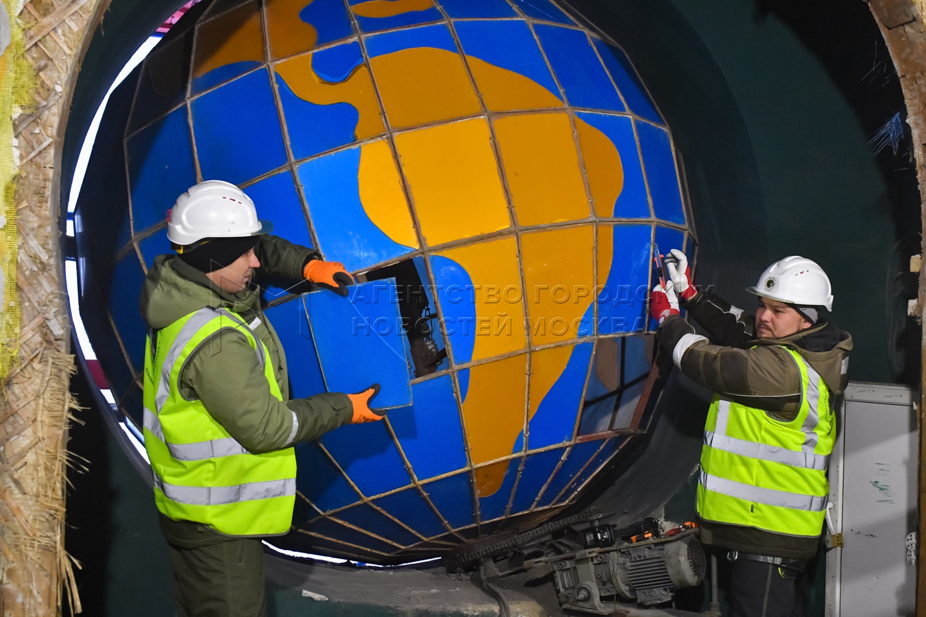 Демонтаж исторического глобуса со здания Центрального телеграфа на ул. Тверская.