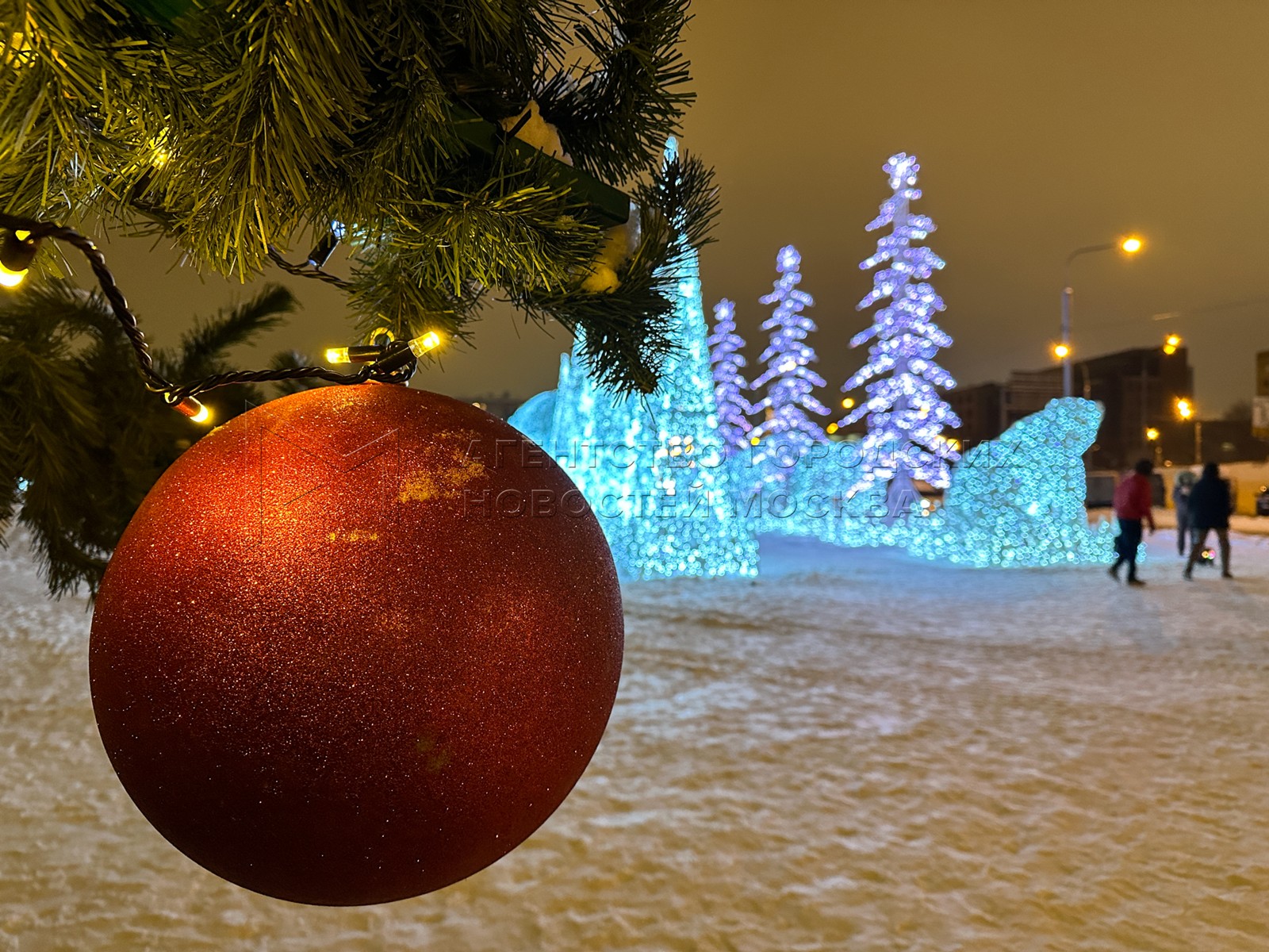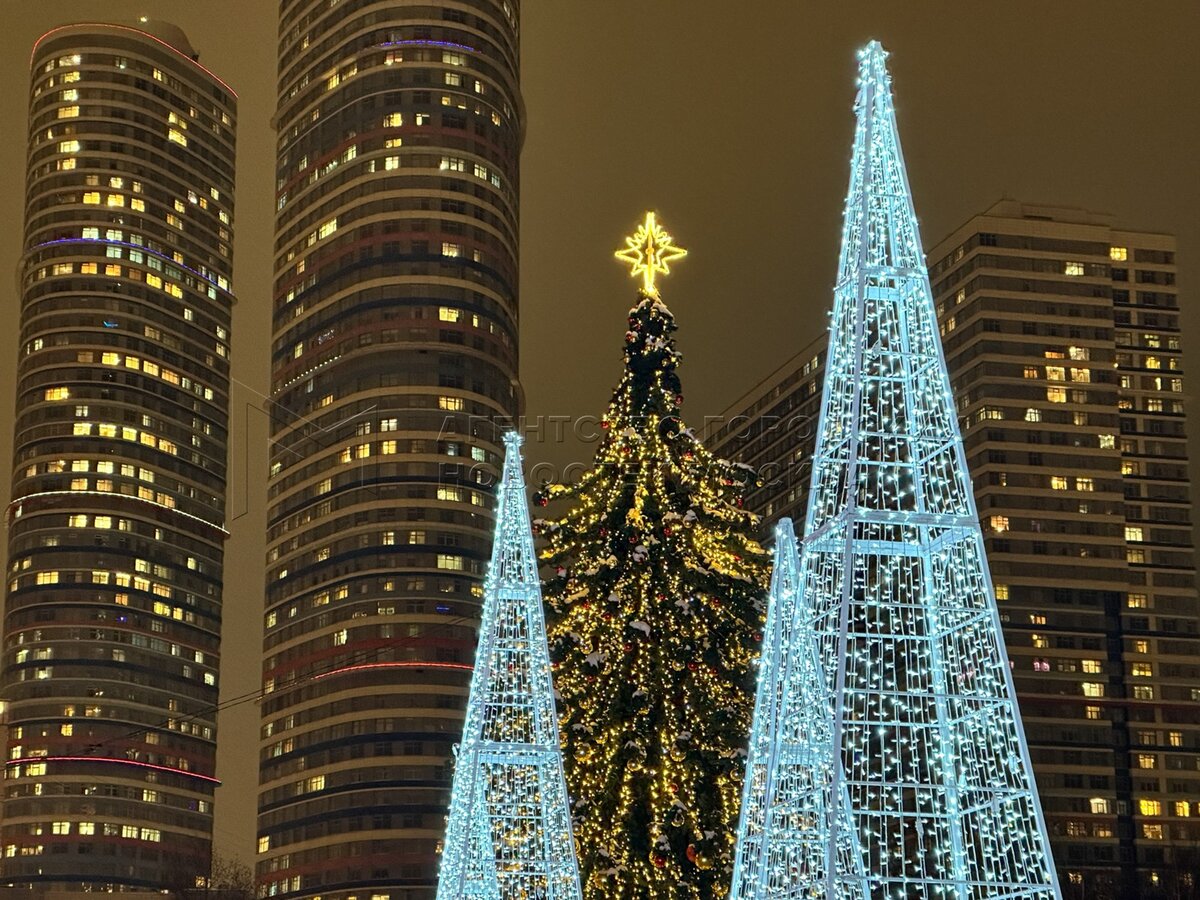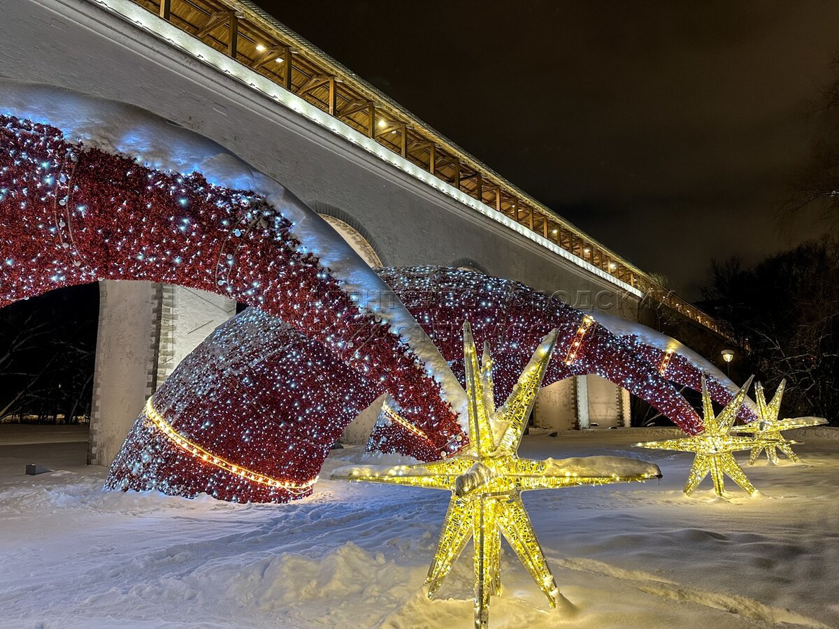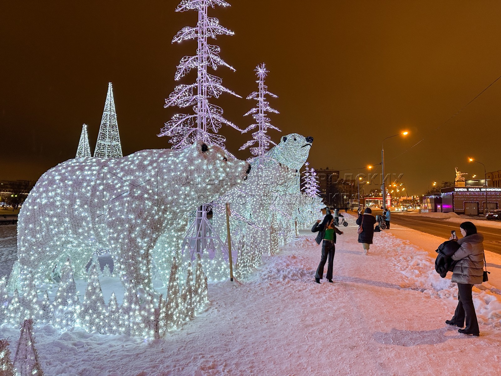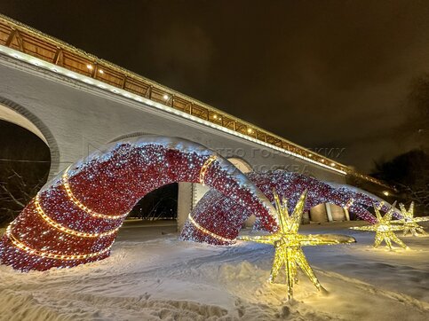 • Заголовок: Новогодняя елка и светодиодные инсталляции в виде звезд и полярных медведей у Ростокинского акведука