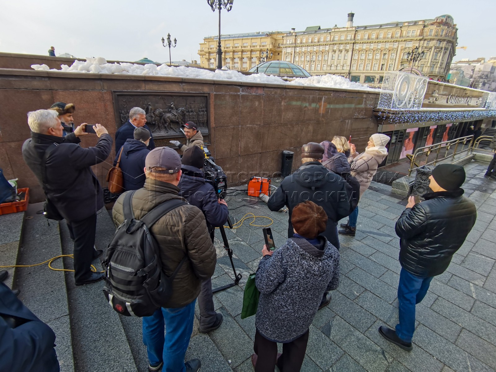 • Заголовок: Работы по восстановлению поврежденного горельефа «Парад Победы» на Манежной площади