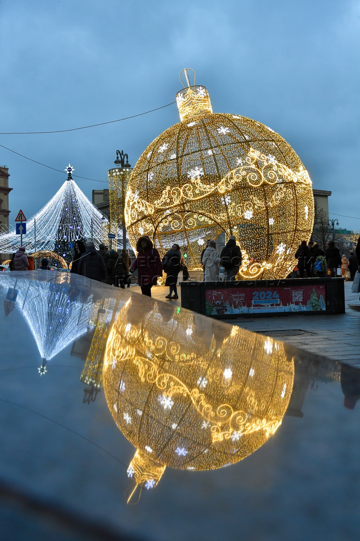 Новогодние украшения у Большого Московского государственного цирка на проспекте В...