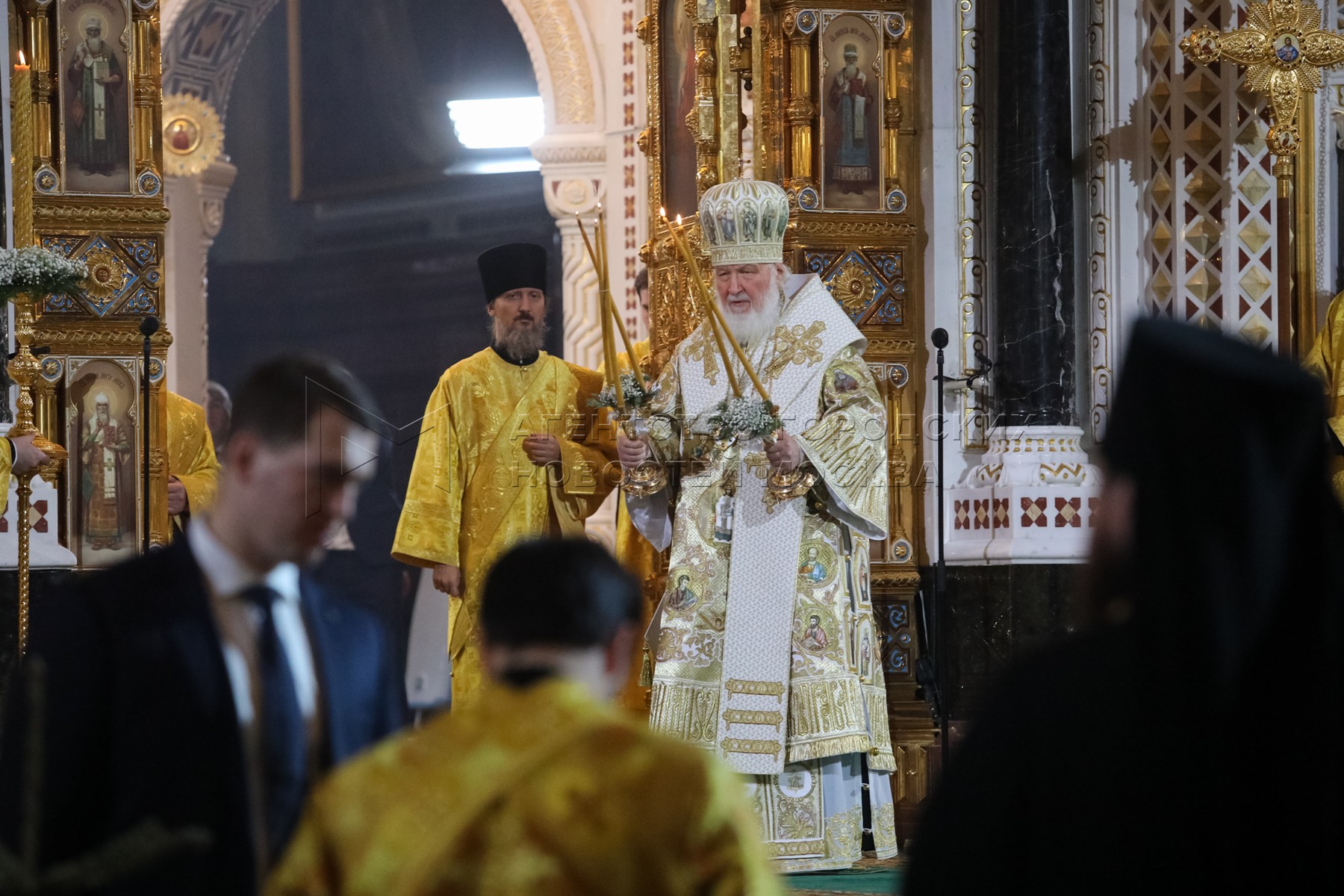 Патриарх Московский и всея Руси Кирилл (справа) во время ночного рождественского ...
