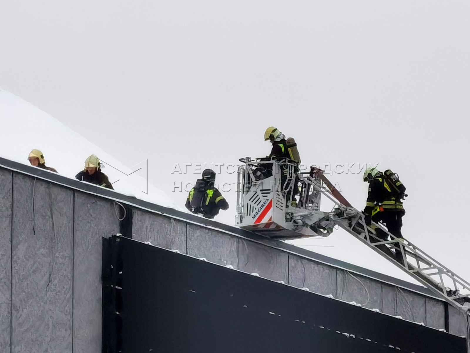 • Описание: Оперативные службы около Московского академического театра сатиры на Триумфальной площади, где произошло возгорание деревянных конструкций купола.