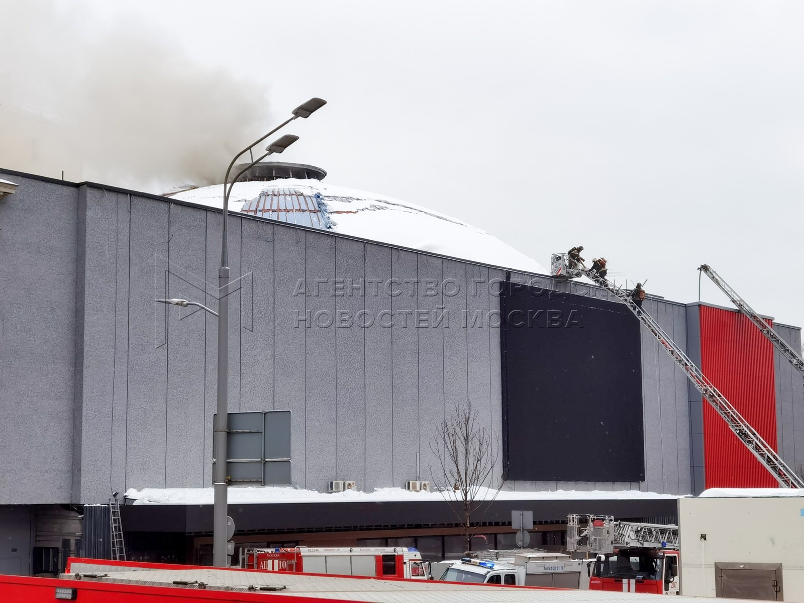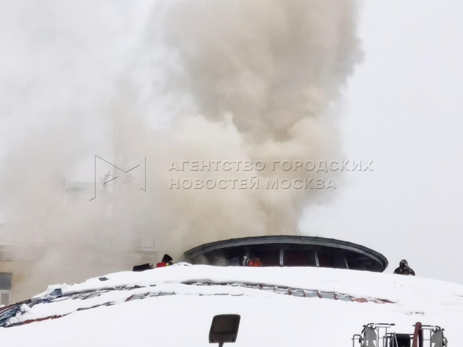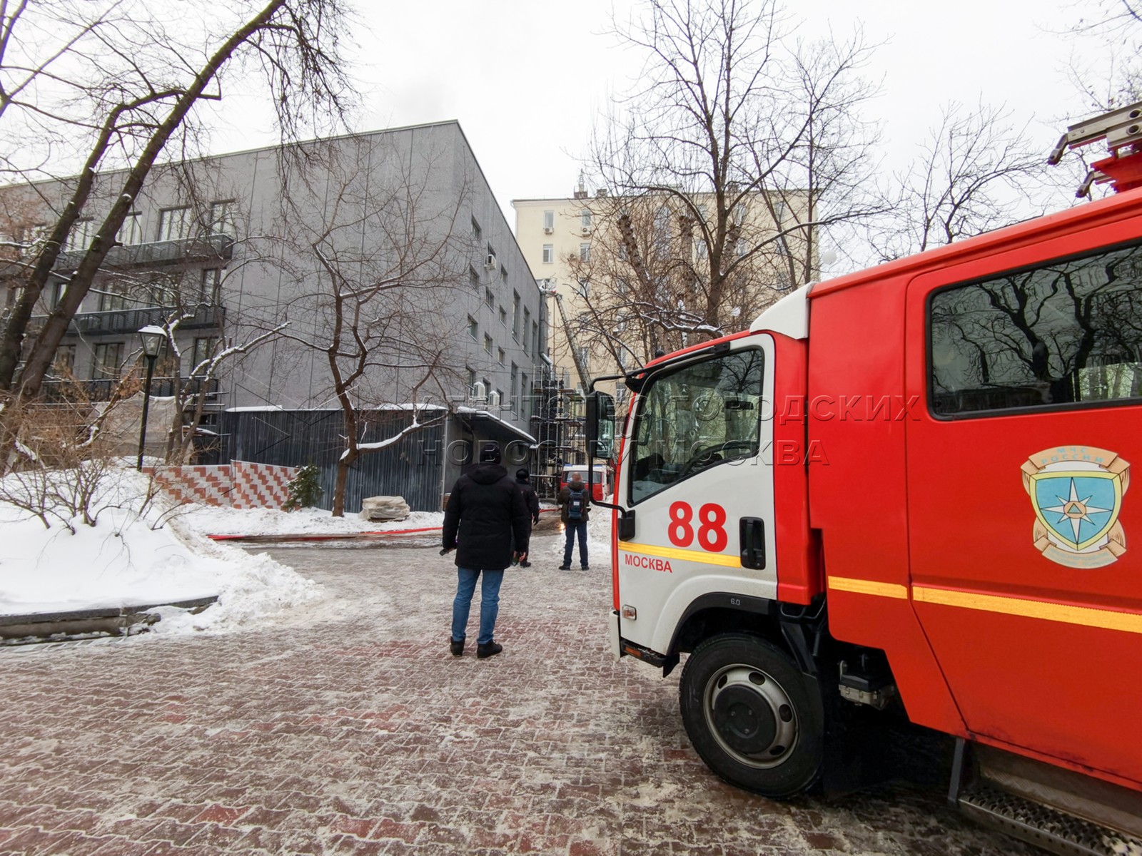 • Заголовок: Оперативные службы около Театра сатиры, где произошло возгорание деревянных конструкций купола