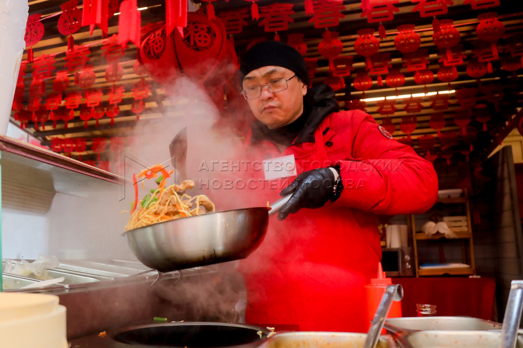 • Описание: Повар в павильоне с китайской едой. Фестиваль «Китайский Новый год в Москве» в Камергерском переулке.
