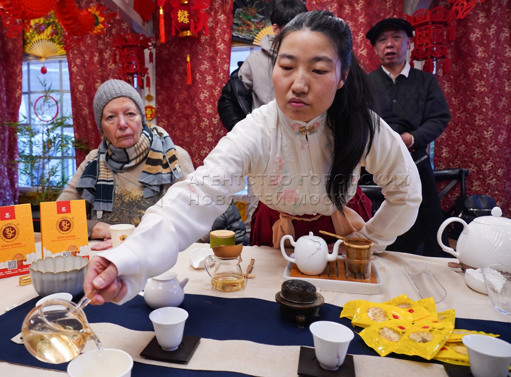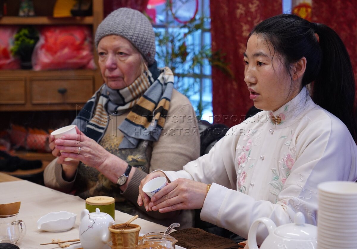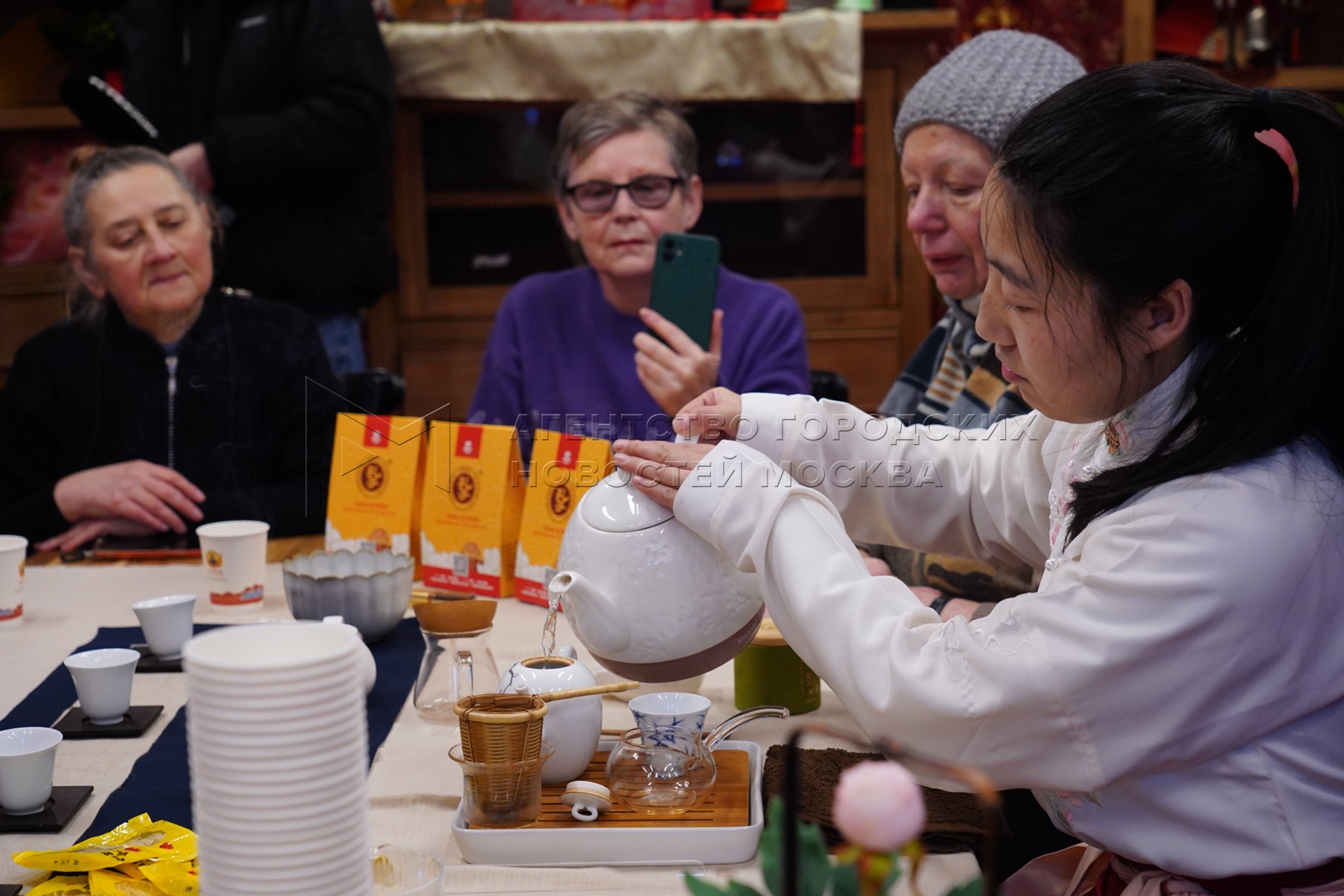 Мастер-класс по чайной церемонии от преподавателей образовательного проекта «Кабинет Конфуция» в Камергерском переулке. Праздничные мероприятия в центре Москвы, посвященные китайскому Новому году.