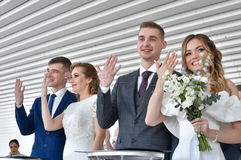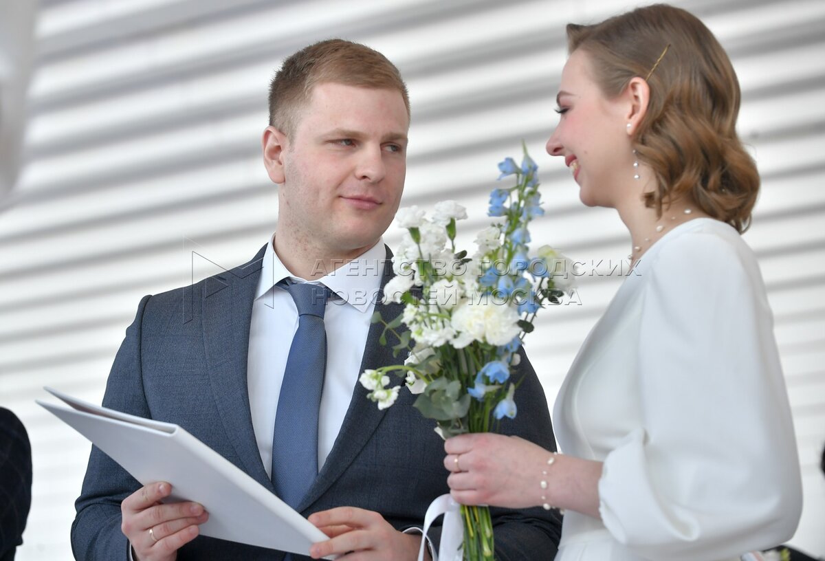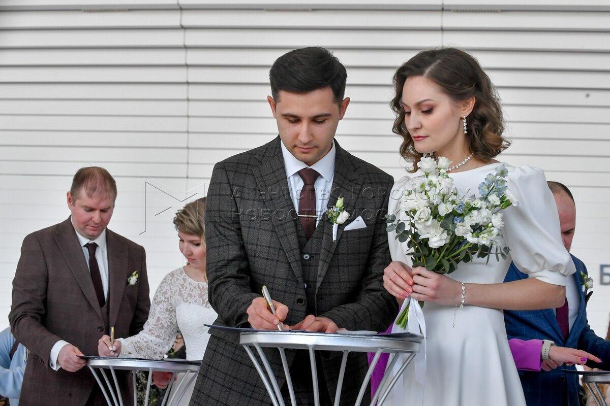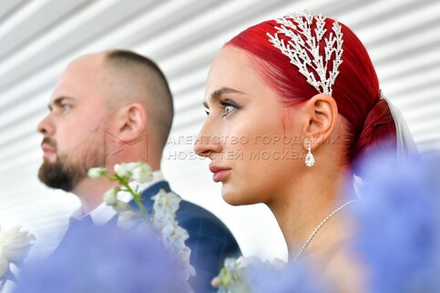 Церемония бракосочетания молодоженов – работников атомной отрасли из разных город...