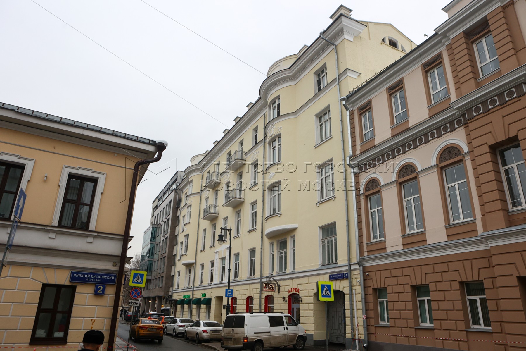 Дом, фасад которого украшен изображениями животных, по адресу: Большой Кисловский пер., д. 4, стр. 1. Здание капитально отремонтировали в 2023 году.