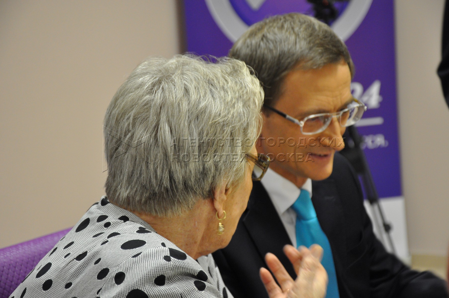 • Описание: Народная артистка России Римма Маркова и кандидат в мэры Москвы Николай Левичев во время подготовки к теледебатам кандидатов на пост мэра Москвы на канале «Москва 24».