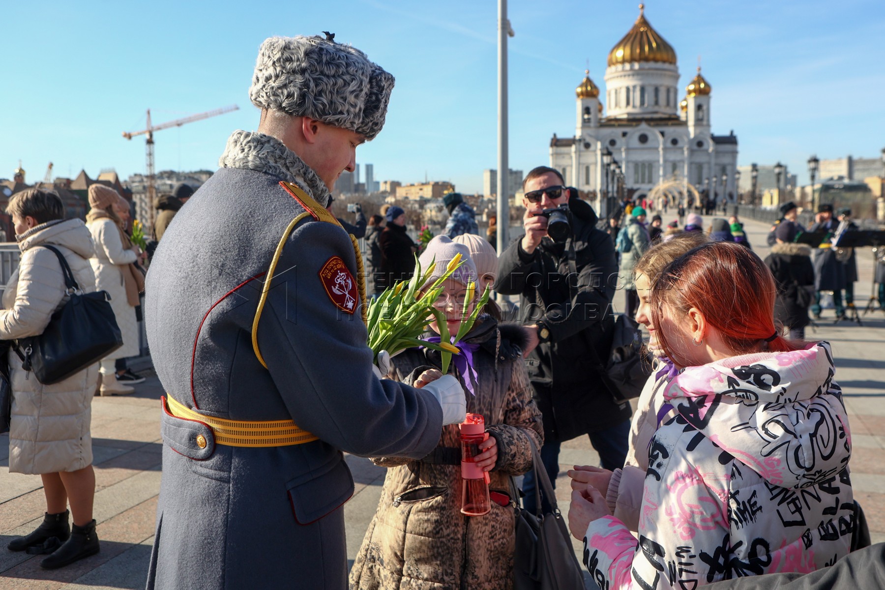 Выступление оркестра Росгвардии к Международному женскому дню на Патриаршем мосту...