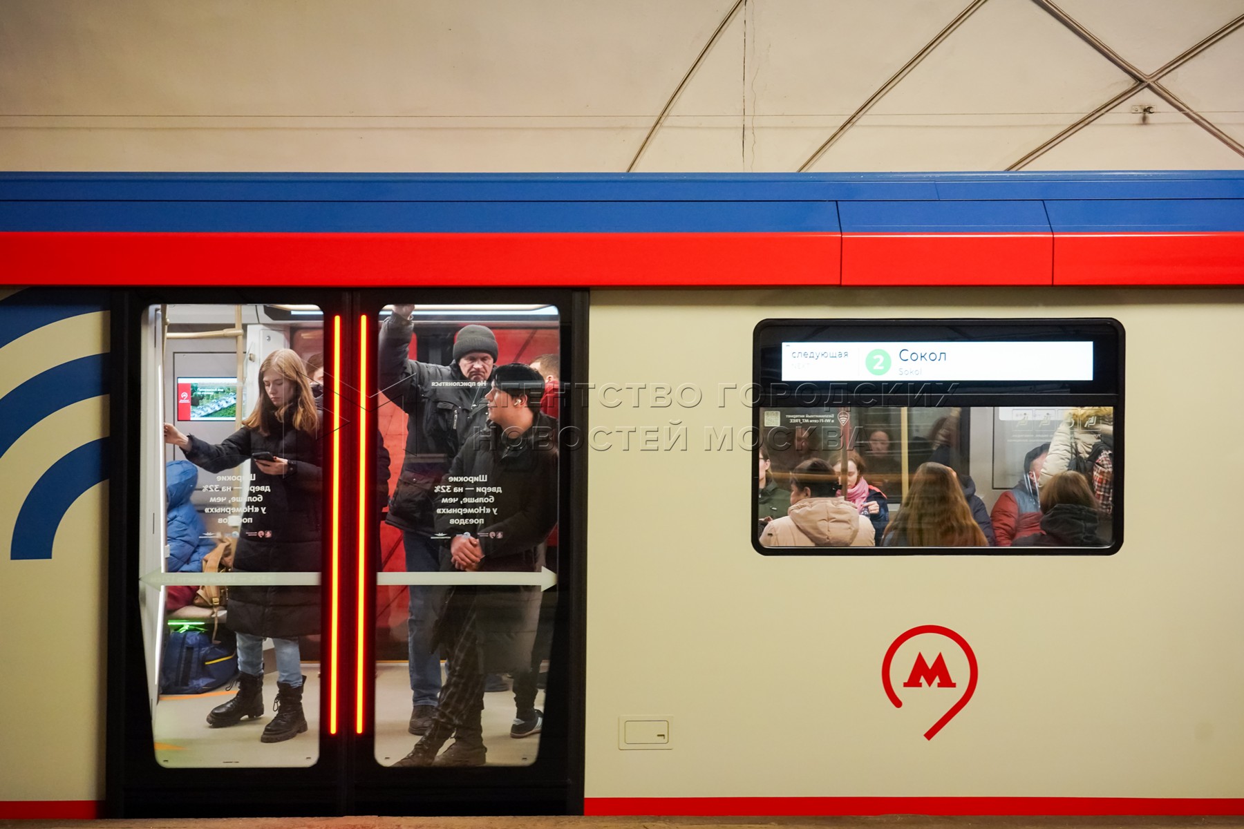 Поезд новой серии «Москва-2024» на станции «Сокол» Замоскворецкой линии столичног...
