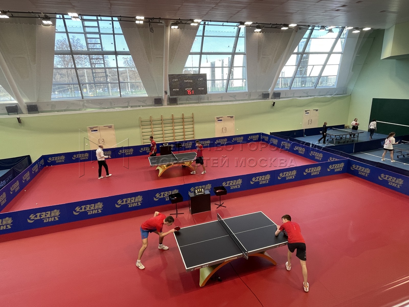 • Описание: Зал настольного тенниса. Открытый после реконструкции универсальный спортивный зал «Дружба» в олимпийском комплексе «Лужники». Фото: Владимир Новиков, пресс-служба мэра и правительства Москвы.