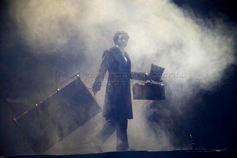 Актриса Антонина Рыбаловлева в роли Пушкина во время показа спектакля «Дубровский...