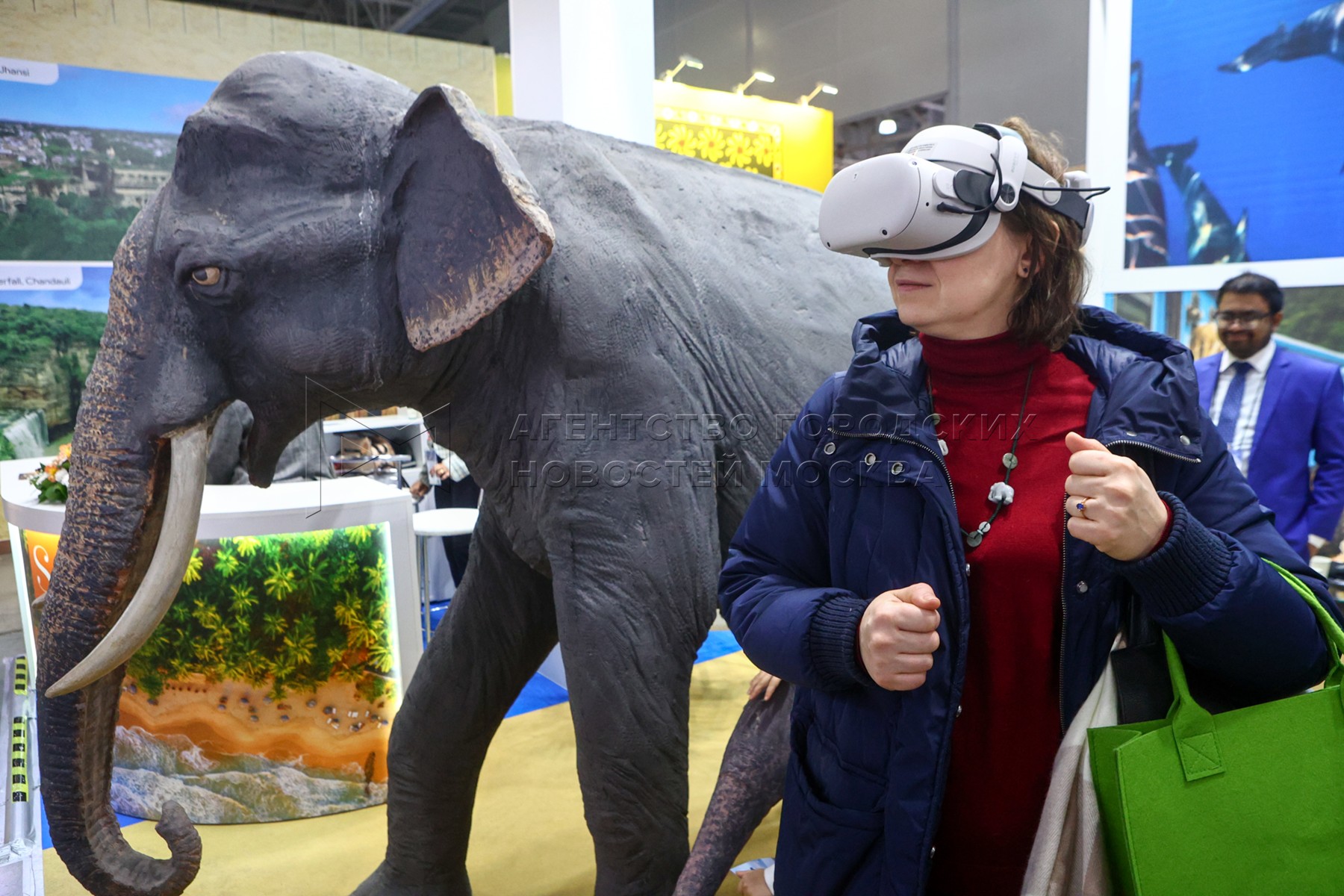 Посетительница в 3D-очках, (виртуальная реальность). Международная выставка туриз...