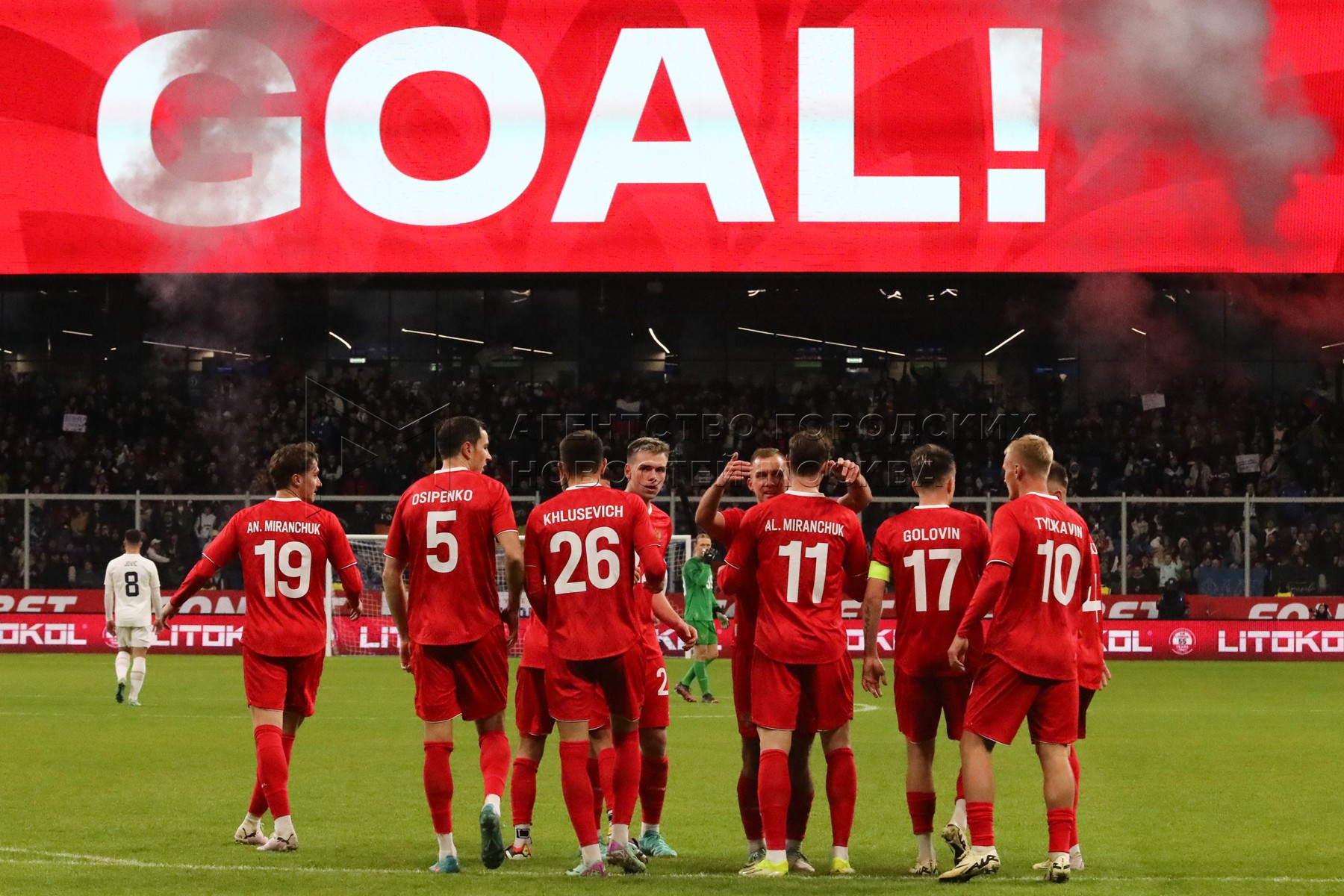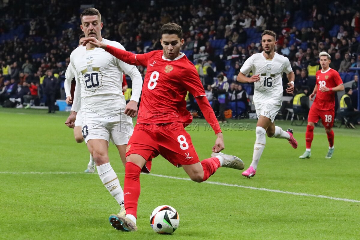 Товарищеский матч между сборными командами России и Сербии на стадионе «ВТБ Арена...