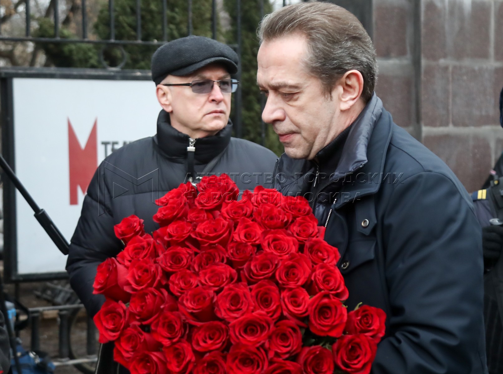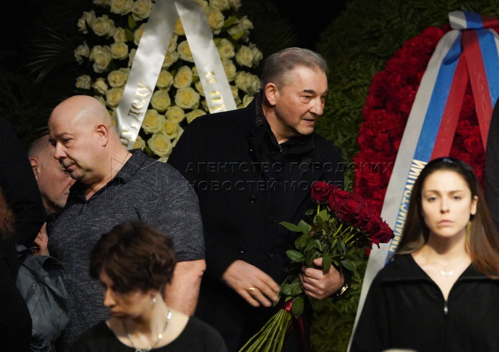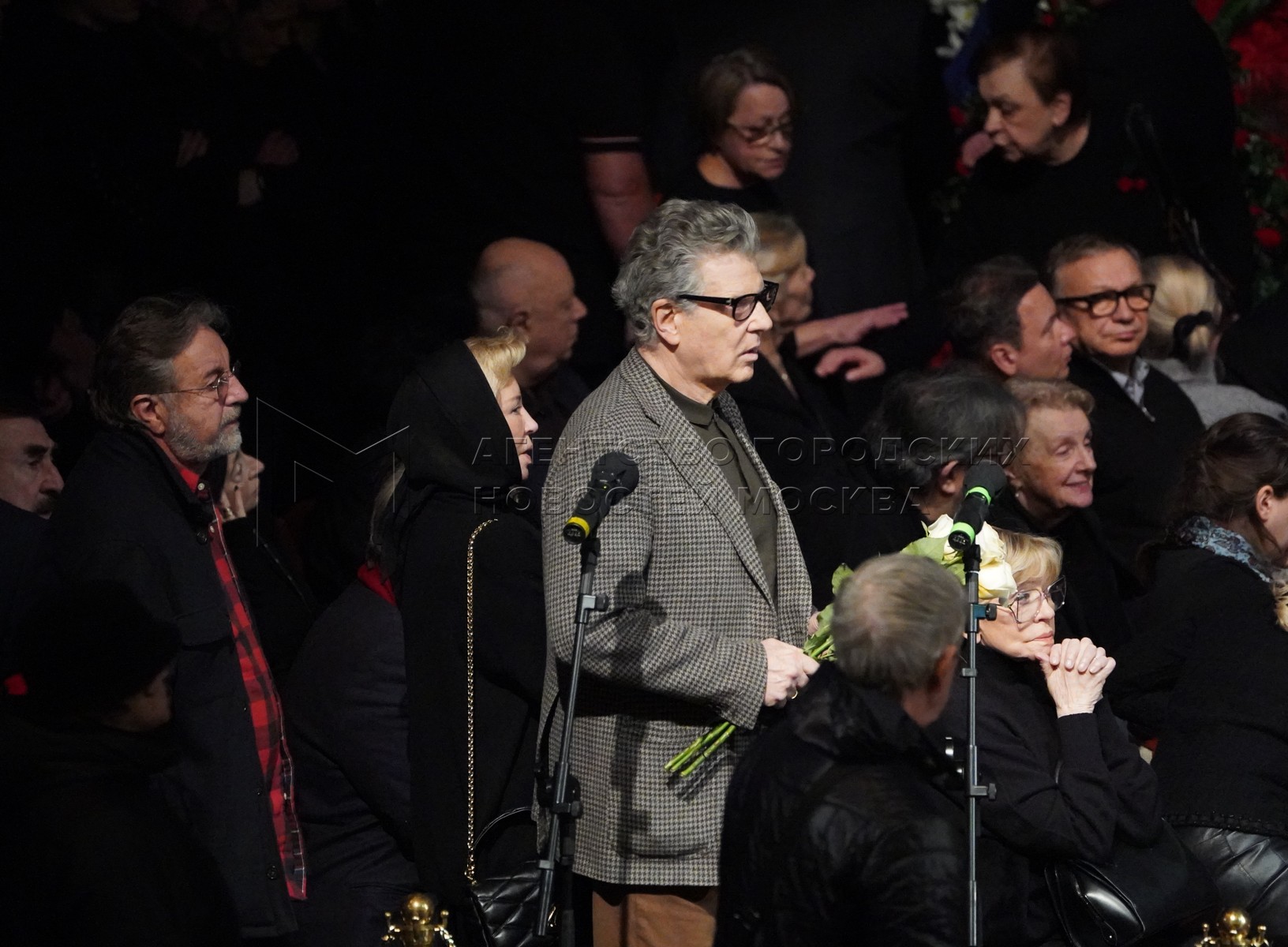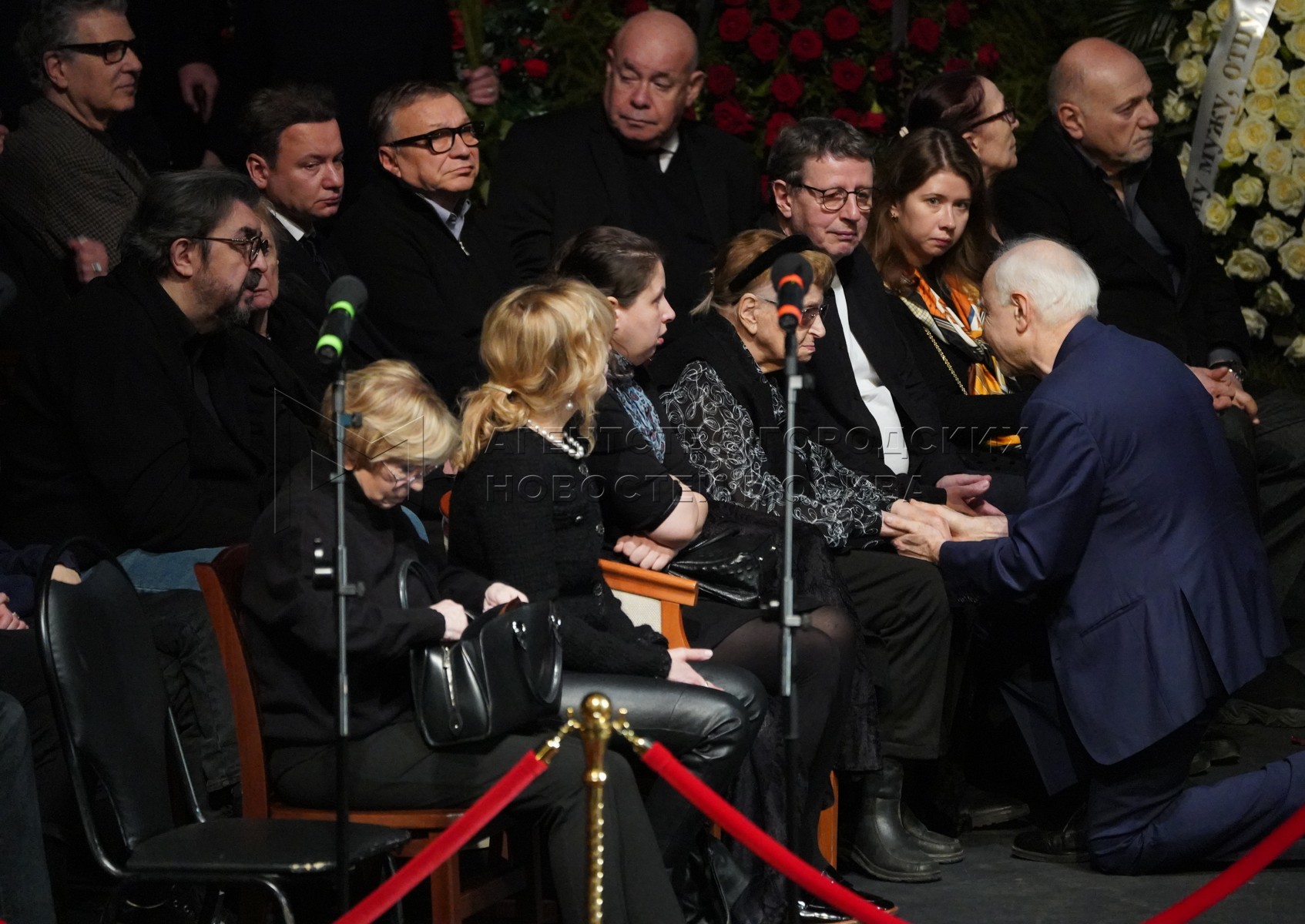 Сын А.Ширвиндта – телеведущий Михаил Ширвиндт (в центре). Прощание с народным арт...