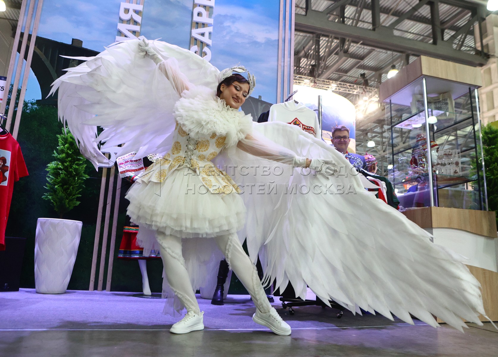 Участница в костюме ангела. Международная выставка туризма и индустрии гостеприим...