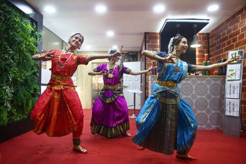 Выступление индийских танцовщиц. Международная выставка туризма и индустрии госте...