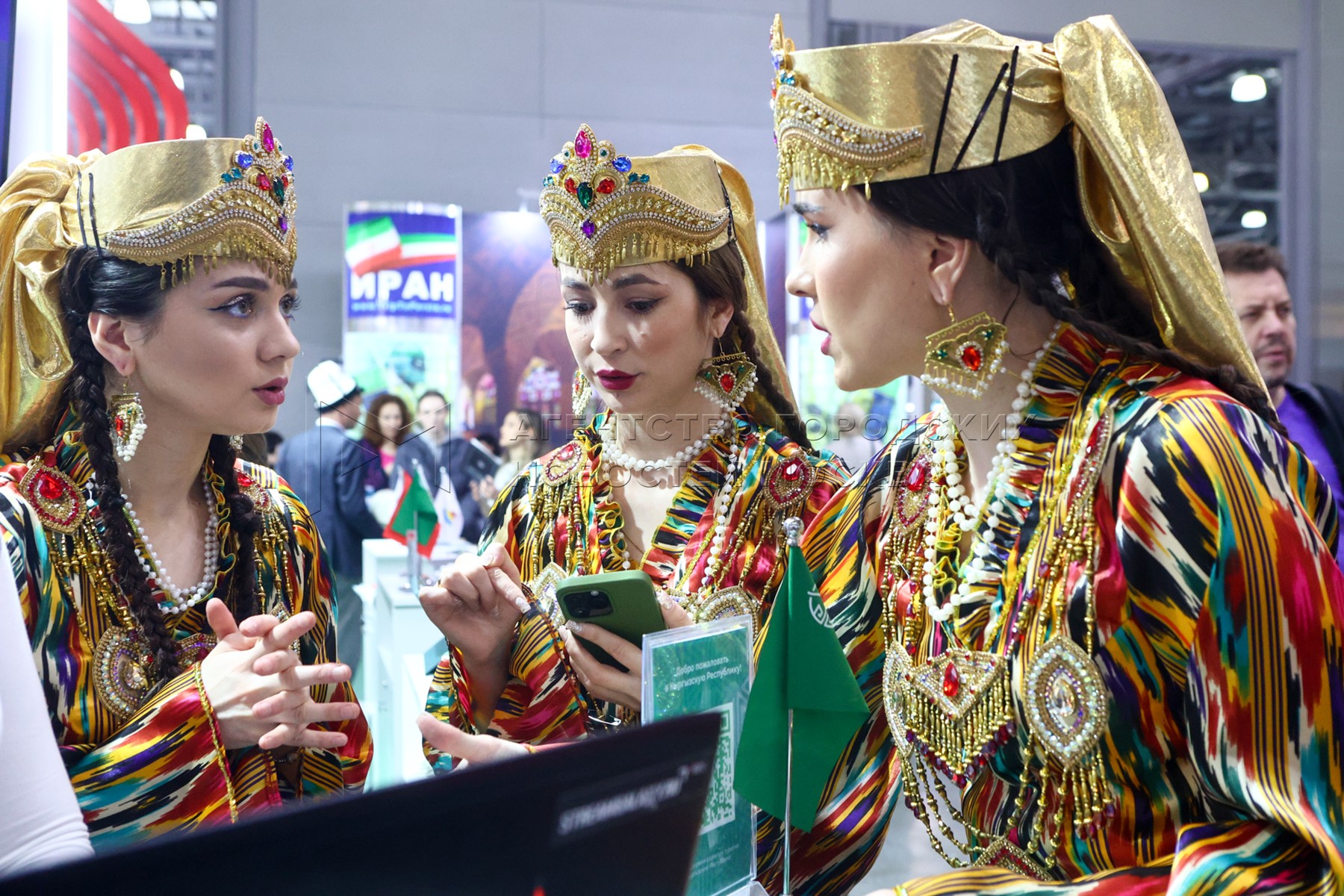 Участницы выставки в национальных костюмах. Международная выставка туризма и инду...