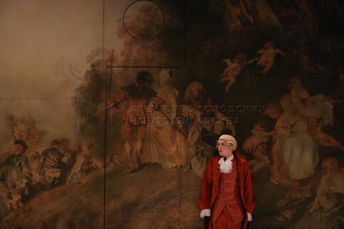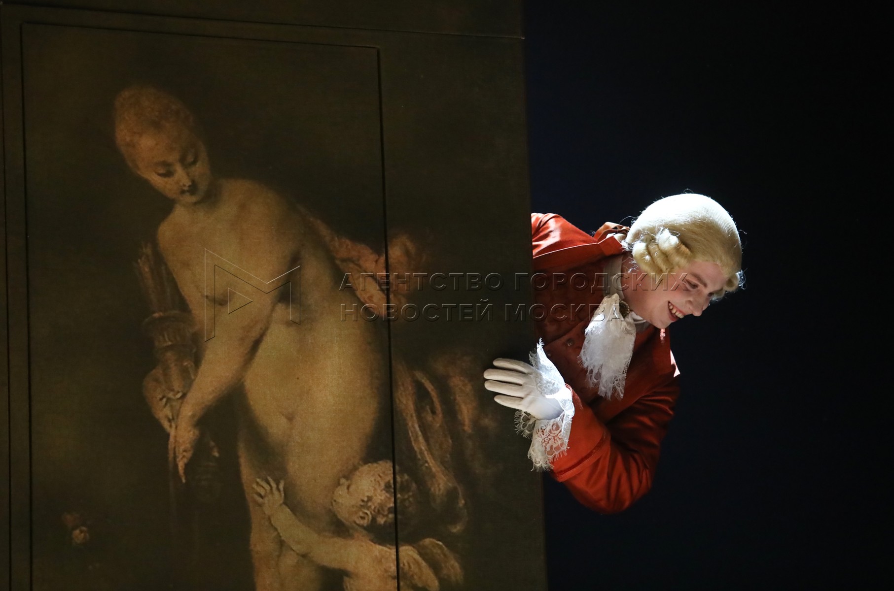 Актер Андрей Кондаков в роли Маскариля, слуги Валера во время премьерного показа ...