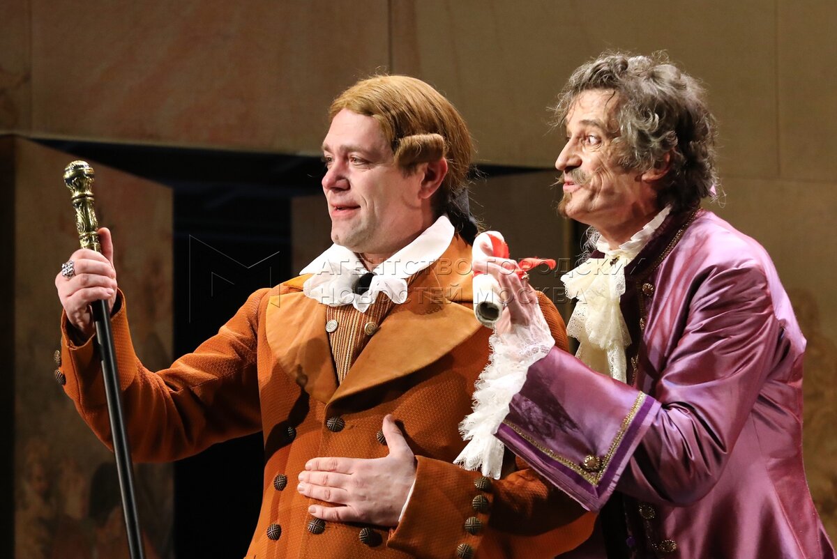 Актер Андрей Кондаков в роли Маскариля, слуги Валера (справа) во время премьерног...