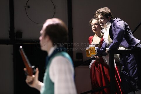 Актеры Анастасия Шумилкина в роли Люсиль и Федор Бавтриков в роли Эраста, молодог...