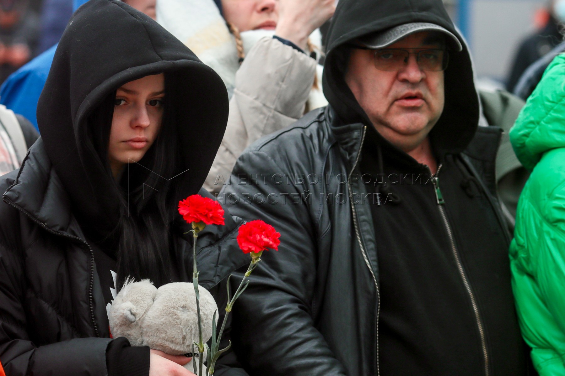 - Описание: Люди несут цветы, свечи и мягкие игрушки в память о жертвах теракта в подмосковном Crocus City Hall.