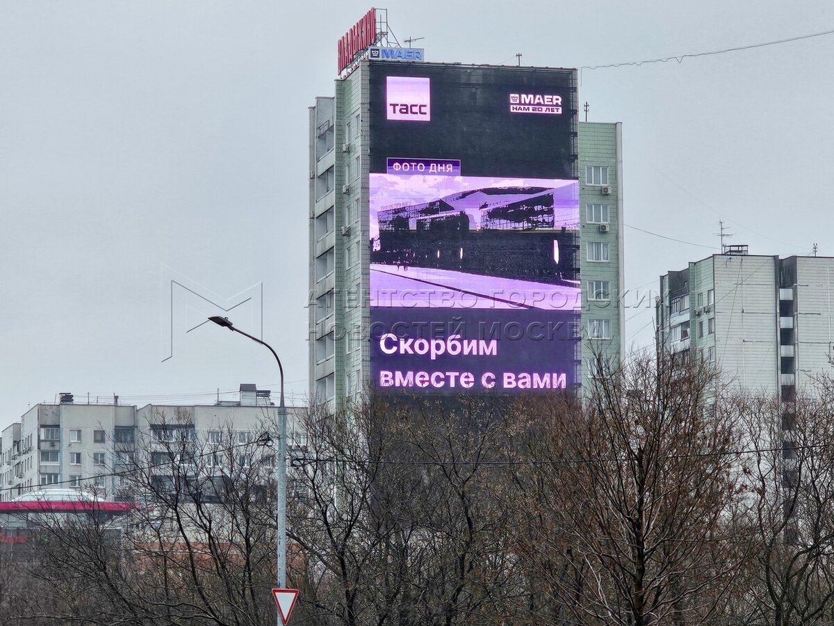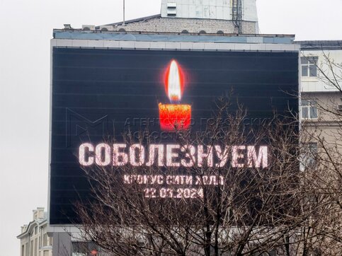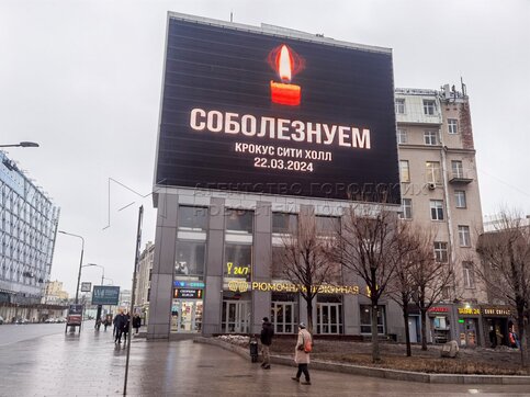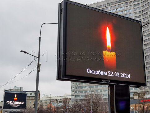 - Заголовок: Уличные медиаэкраны в столице в память о жертвах теракта в подмосковном Crocus City Hall