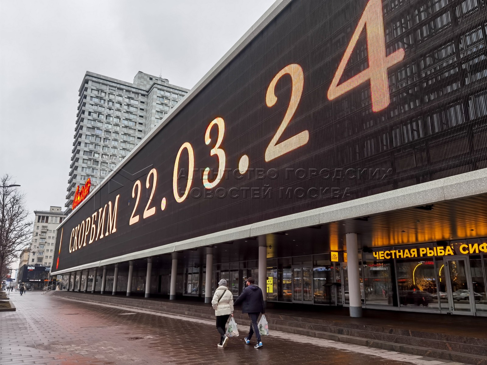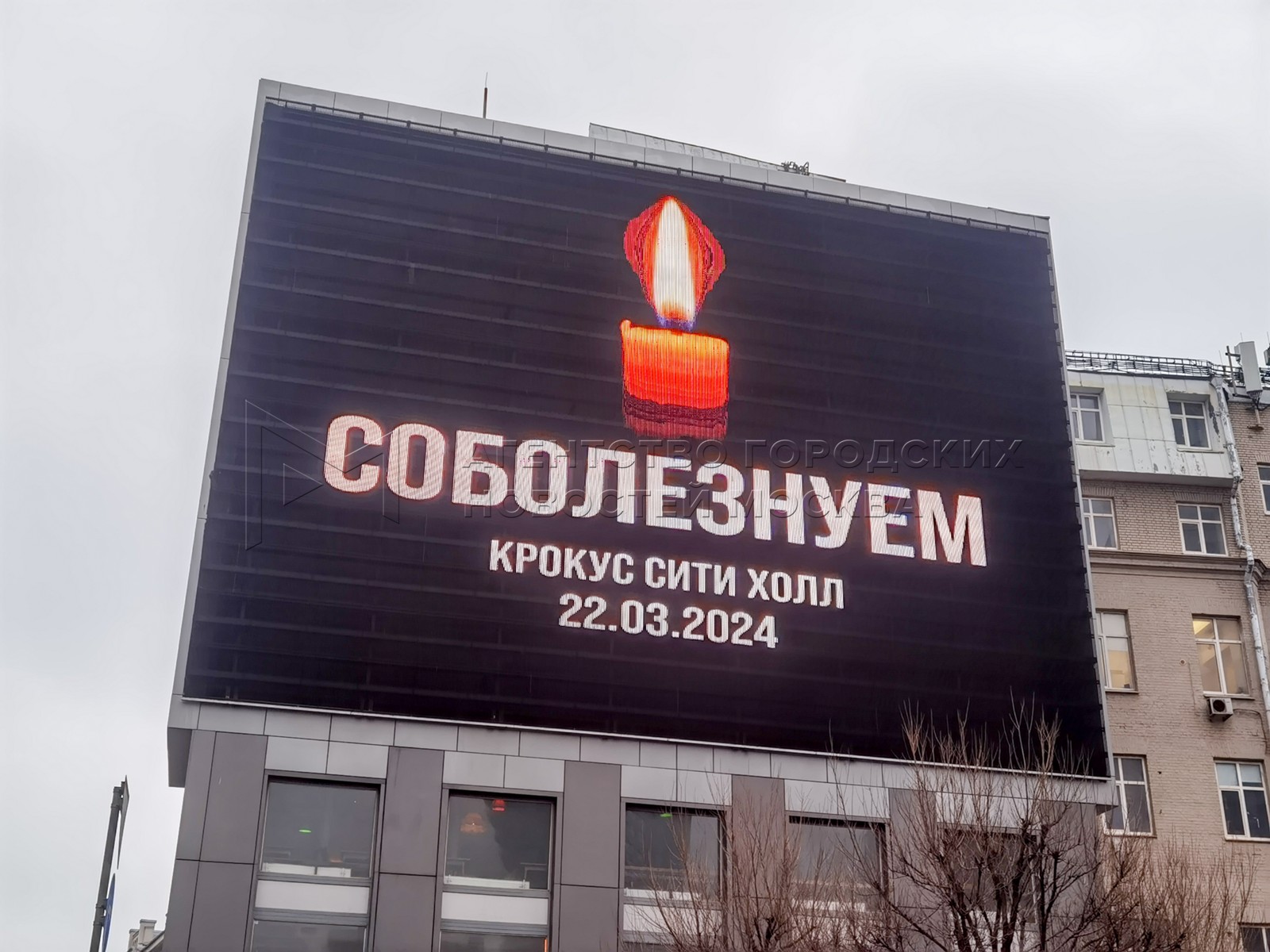 Уличные медиаэкраны в столице в память о жертвах теракта в подмосковном Crocus City Hall