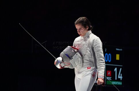 Саблистка Софья Великая в четвертьфинальном поединке среди женщин на международны...